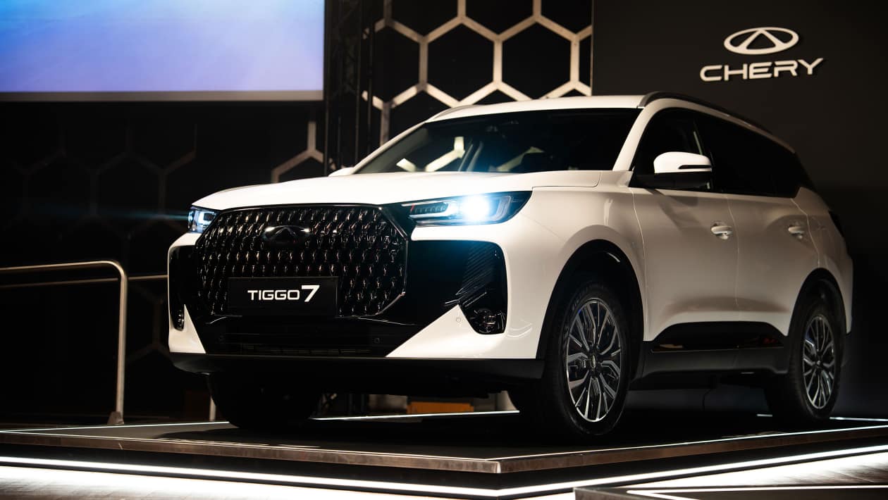 Chery показала стартовые автомобили Tiggo 7 и Tiggo 8, флагманский Tiggo 9, который прибудет примерно к концу 2025 года, и 4,3-метровый Tiggo 4, который должен появиться к марту 2026 года.