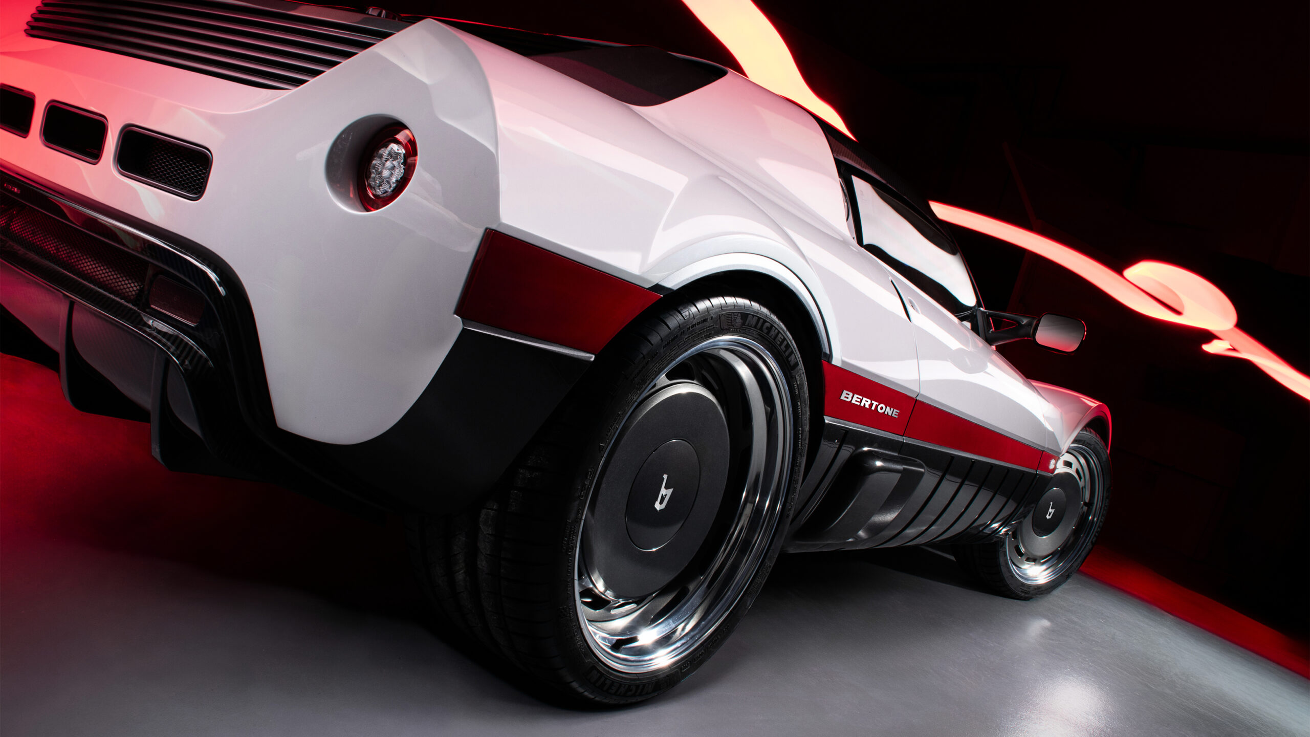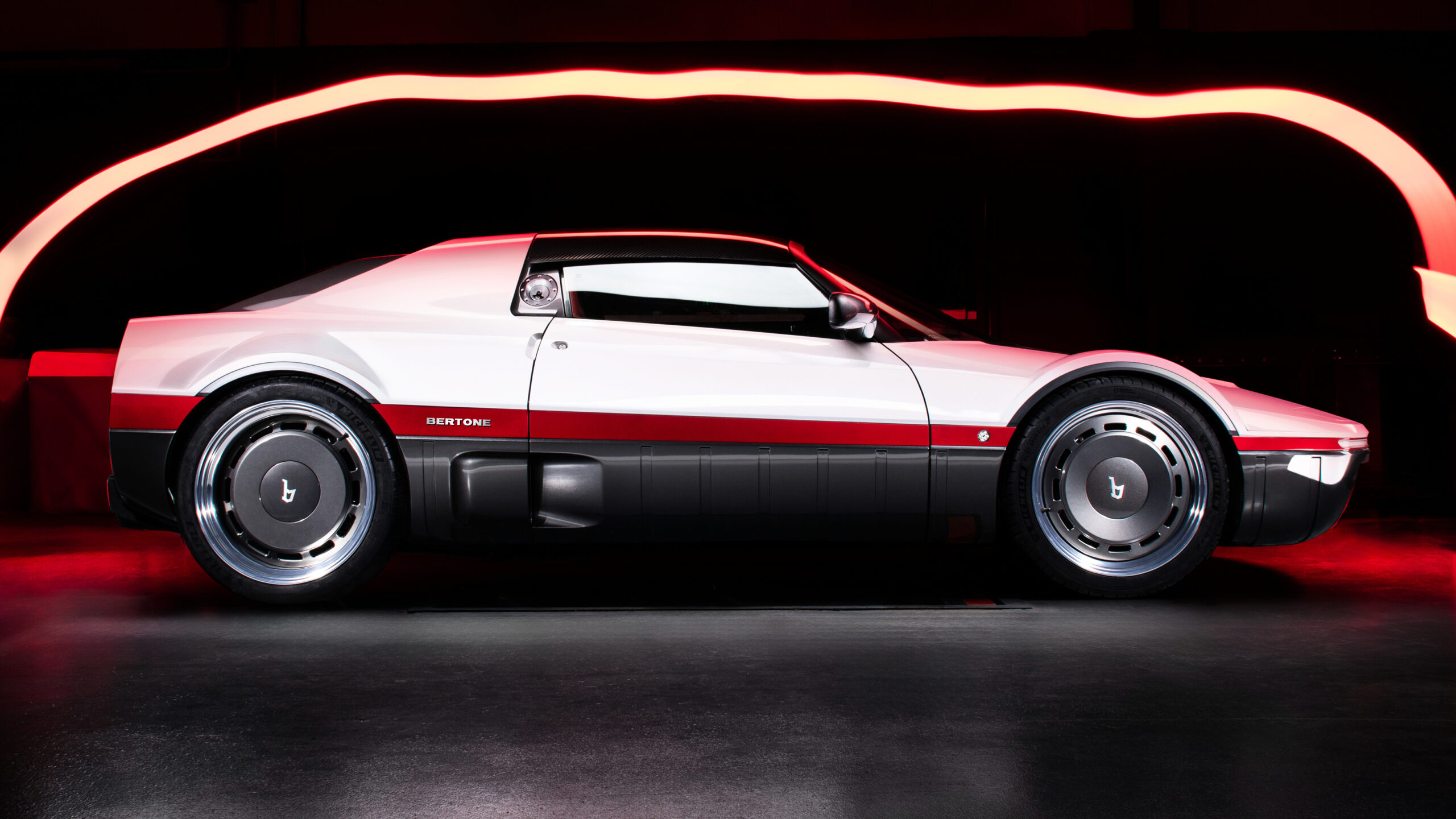 Бертоне также усовершенствовал и модернизировал дизайн первоначальной концепции, например, включив S-провод, как вы найдете на Ferrari 296, в чрезвычайно низкий и заостренный передний край. Плюс автомобиль имеет всплывающие фары и колеса, которые выглядят так, как будто они были сформированы вокруг кованых алюминиевых колес, которые были вдохновлены теми, что на концепции 1969 года.