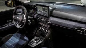 Более прочные ткани облекают сиденья, DashCoinboard и двери, в том числе новые сиденья из черной ткани для Sandero, или с светло-синей отделкой в Stepway. Обновление к отделке Journey (около 1000 фунтов стерлингов) добавляет голубую джинсовую обивку, в то время как верхняя спецификация Extreme’s подкладка синтетическая для дополнительной устойчивости и поставляется с резиновыми дверными ковриками, чтобы отразить ее более прочное позиционирование.