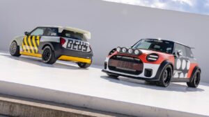 MINI представила пару автомобилей концептов MINI x Deus Ex Machina, которые объединяют миры автомобилей и моды, и будут представлены на выставке IAA в Мюнхене в этом году. Они основаны на горячих дорожных автомобилях John Cooper Works один электрический, а другой бензиновый и оба являются сотрудничеством между MINI и модным брендом Deus Ex Machina.