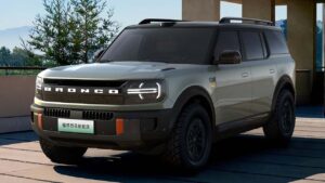 Помимо этого, у нас мало технических деталей, но изображения показывают, что новый автомобиль выглядит столь же прочным, как и традиционный Bronco, благодаря прямому корпусу, ретро-деталированию и крупным колесным аркам.