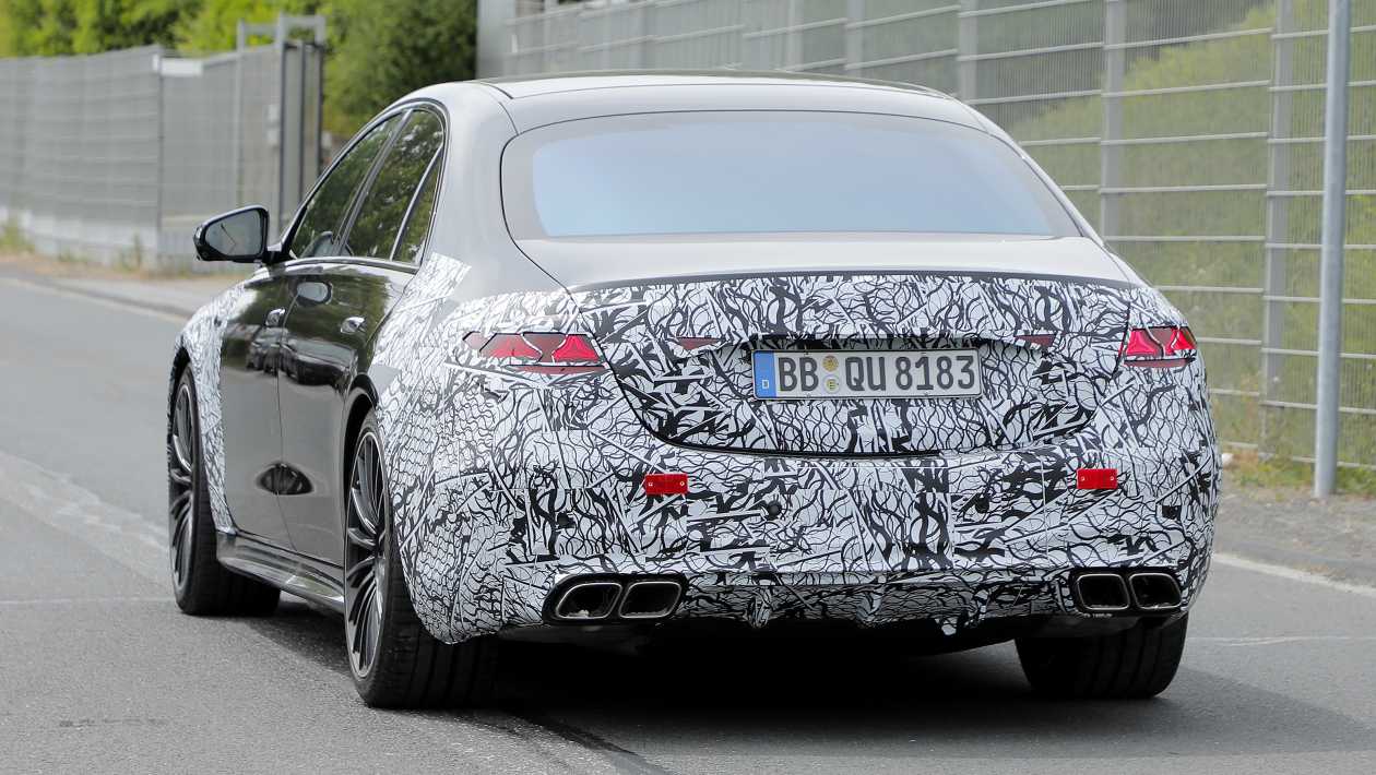 Новые задние фонари, которые, похоже, вдохновлены новейшим E-классом, имеют еще больше трехконечных звездных мотивов. Они расположены над видным набором выхлопных устройств в нижней части нижнего бампера. S 63 не только имеет дополнительное охлаждение спереди в виде больших вентиляционных отверстий, но и на задней части сохранилась четырехконечная выхлопная схема с тонким центральным диффузором.