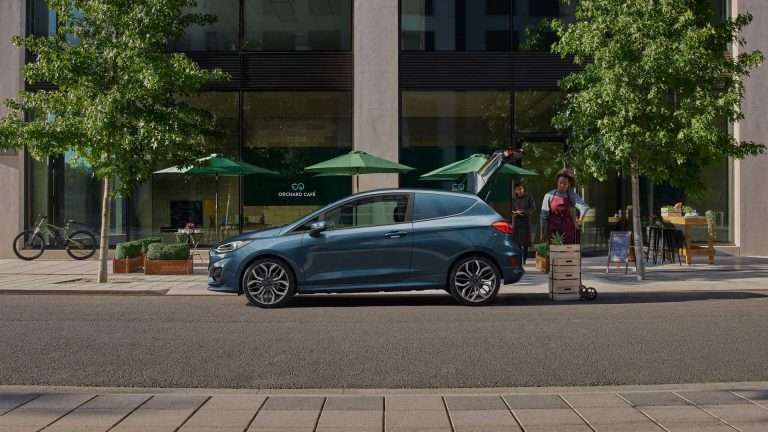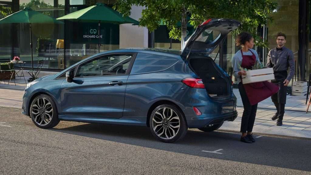 Это все еще трехдверный и двухместный автомобиль, но теперь с матричными светодиодными фарами и функцией дальнего света без бликов. Фургон размером с пинту даже поставляется в двух различных комплектациях — Trend и Sport, каждый из которых отличается своими особенностями внешнего стиля и индивидуальным дизайном колес. Fiesta — это не только единственный хэтчбек B-сегмента, который до сих пор предлагается на Старом континенте без задних дверей, но и единственный фургон на базе супермини после того, как несколько лет назад Corsavan был прекращен.
