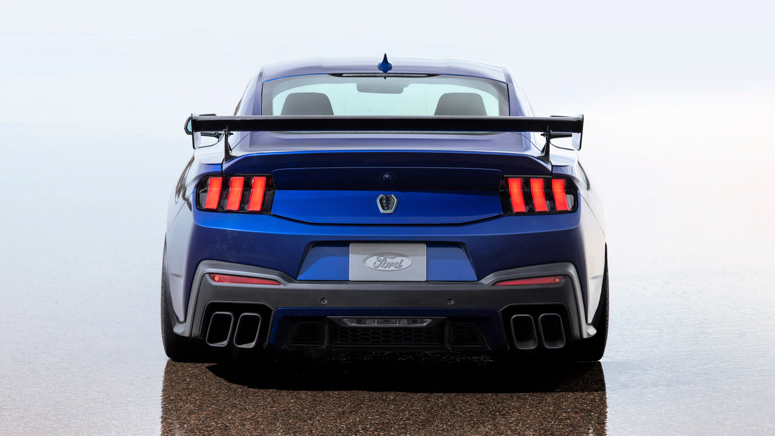 Неизвестно, какие изменения Ford внесла в выхлопную систему, но вместо двойных трубных выходов GTD или круговых квадрокоптеров Dark Horse SC получает набор из четырех довольно отличительных прямоугольных выхлопных наконечников.