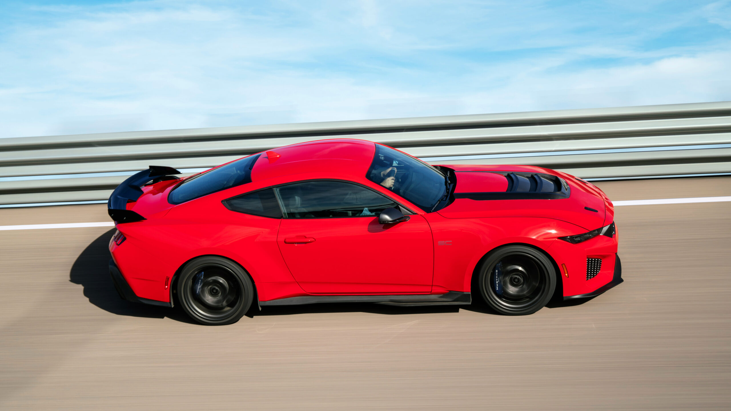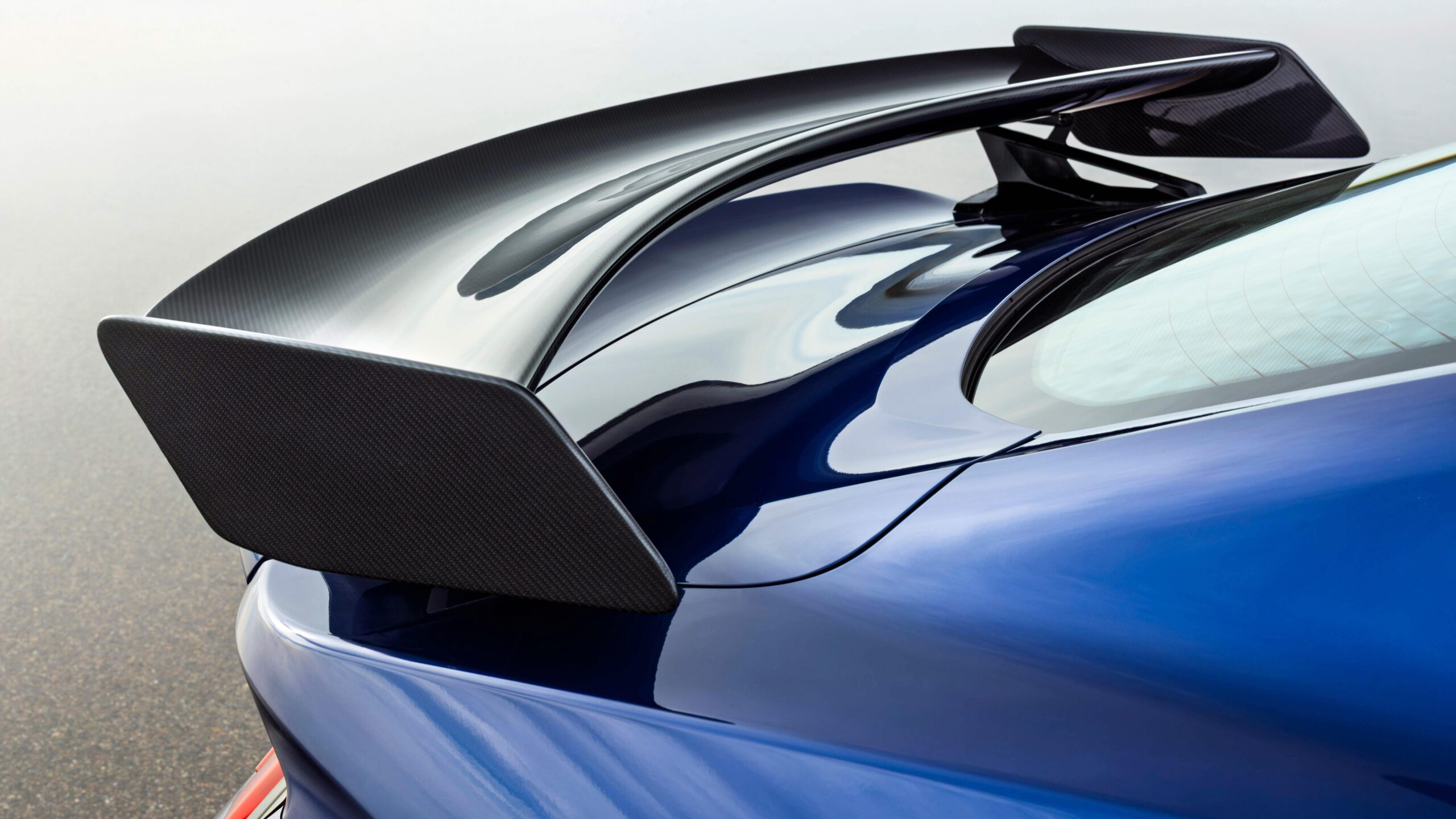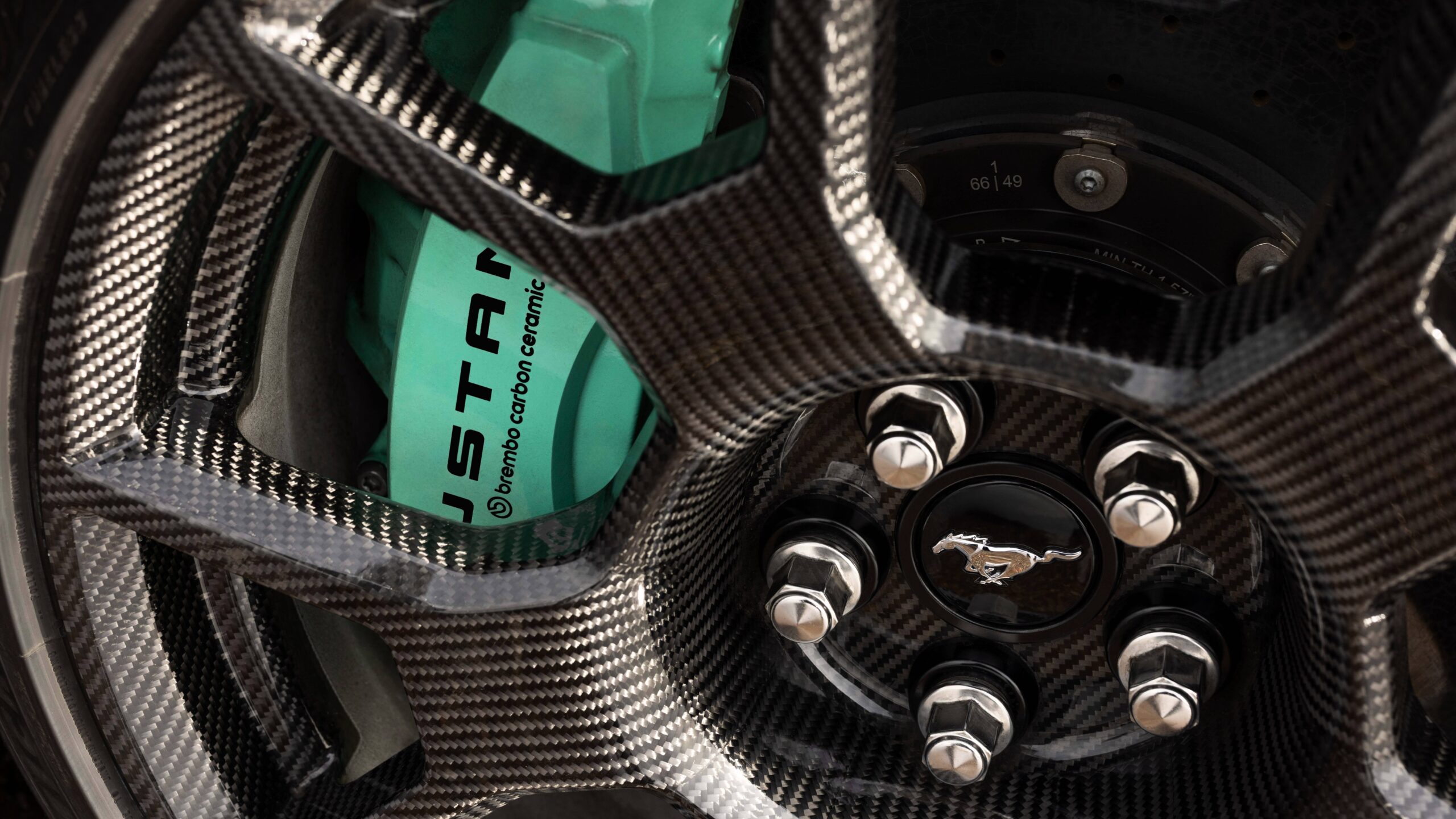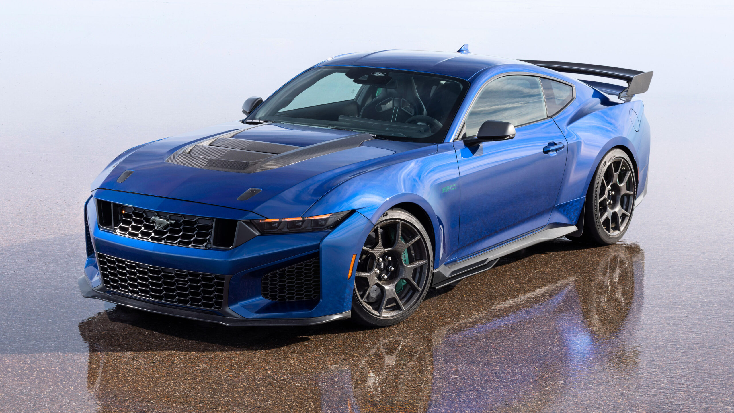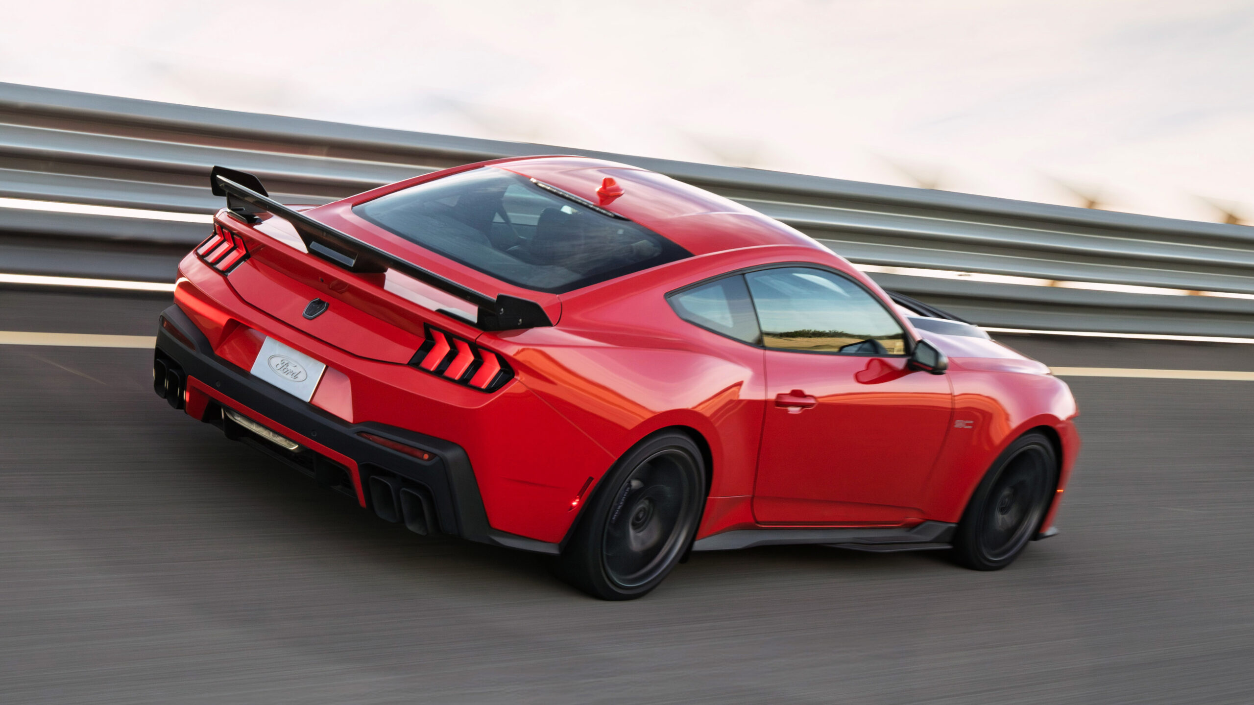 Если вы хотите еще более сфокусированный Dark Horse SC (но все еще не готовы к экстремальной GTD), Ford предоставит вам «Track Pack», который по сути добавляет 20-дюймовые углеродные колеса, карбонокерамические тормоза, более агрессивную подвеску и более агрессивную аэродинамику с новым задним спойлером, помогающим обеспечить 281 кг задней нисходящей силы при скорости 180 миль в час. В общей сложности 68 кг веса удаляется в рамках Track Pack.