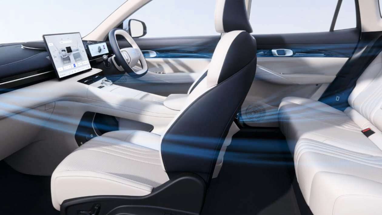 Переходите к комплектации Pro для 19-дюймовых сплавов и 256-цветного внутреннего освещения за 33 990 £, что меньше, чем 3 200 фунтов стерей в Geely EV grant, а в верхней части диапазона находится Max, который стоит 36 990 и имеет панорамную крышу, автоматическую заднюю дверь, отапливаемые и вентилируемые передние сиденья для массажа, а также 16-диапазонную модернизированную стереосистему, включающую динамики в подголовниках.