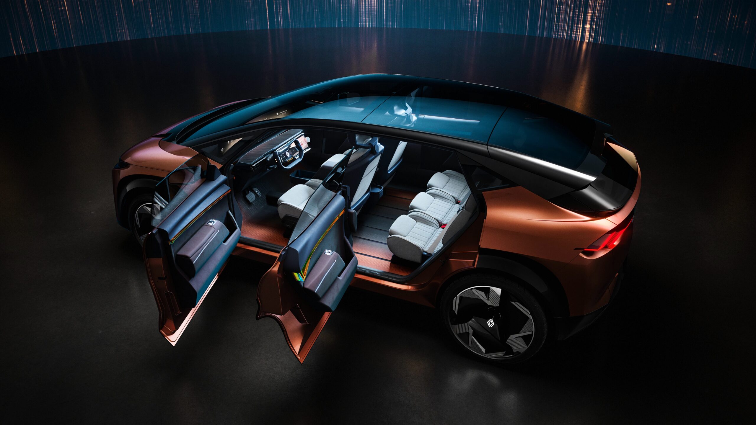 Все эти умно упакованные технологии создают просторную пятиместную концепцию с тремя индивидуальными сиденьями в задней части. Эти сиденья отклоняются и скользят вперед-назад, и их можно подталкивать к передним сиденьям, чтобы максимизировать пространство для больших грузов, утверждает Renault. Индивидуальные сиденья также являются благом для установки детских сидений, чему способствуют задние двери, открывающиеся на широкий 90 ̊.