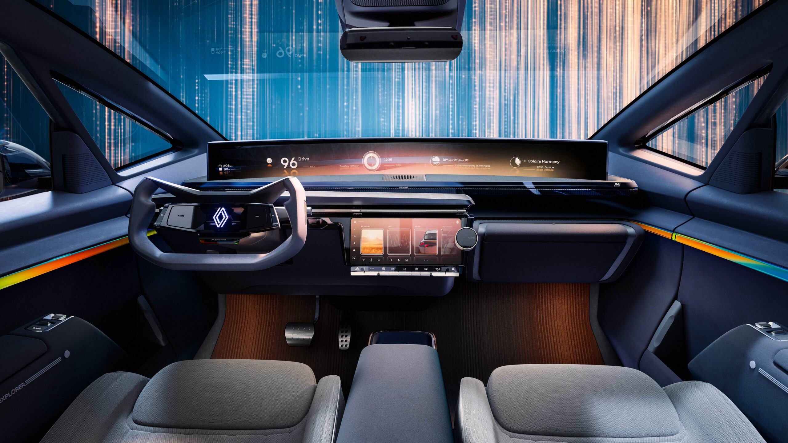 А ярмо рулевого колеса указывает на то, что Renault будет внедрять steer-by-wire в свою архитектуру автомобилей следующего поколения, чтобы идти в ногу с Peugeot, который будет коммерциализировать его на 208 супермини в 2027 году. Это заменяет механическую связь между рулем и передними колесами электронными импульсами, обеспечивая постоянно изменяющийся уровень помощи в зависимости от обстоятельств автомобиля.