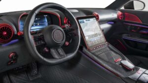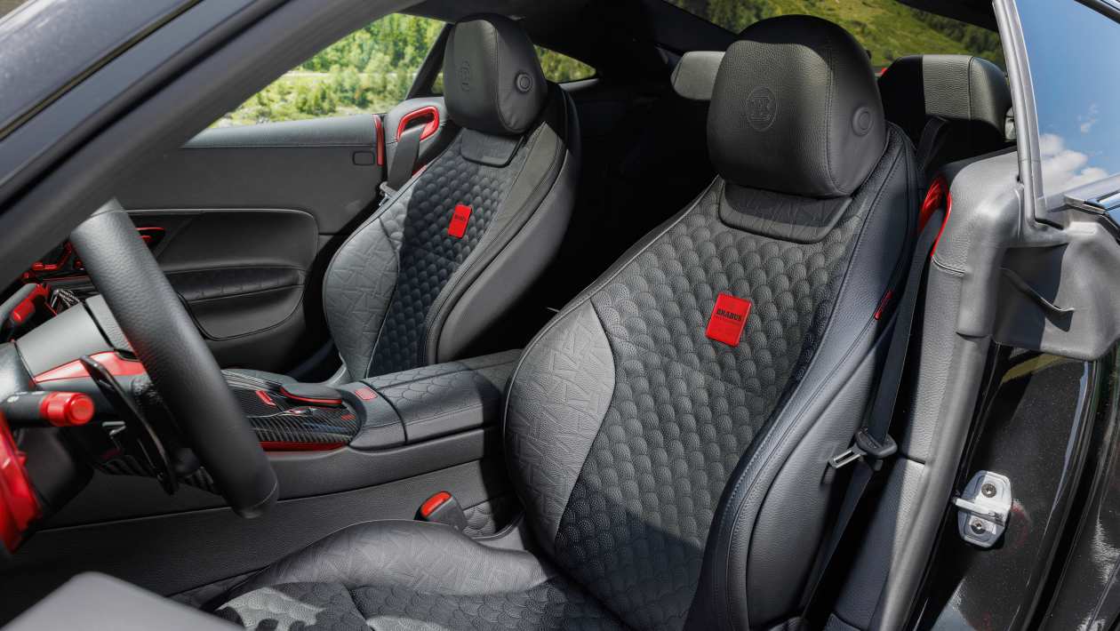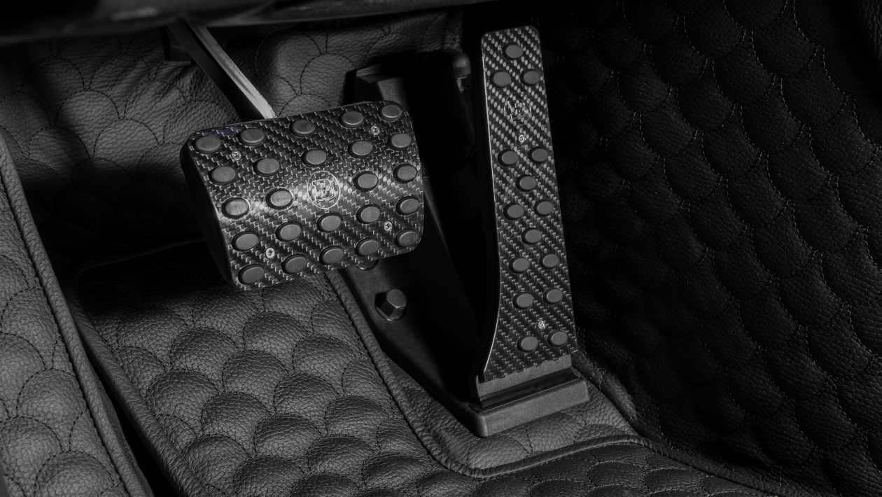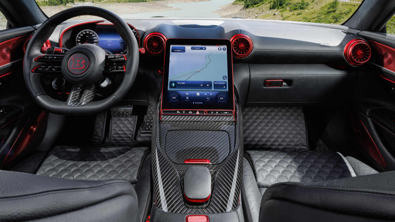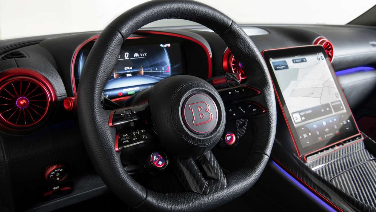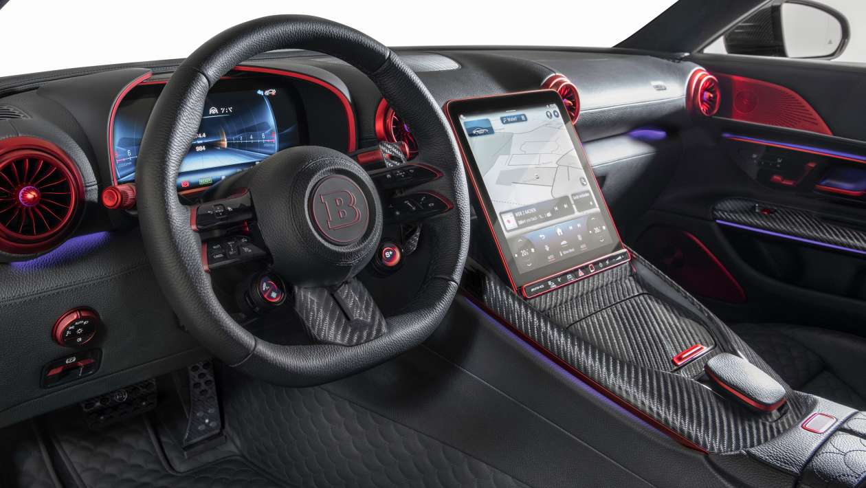 Brabus также был занят внутри автомобиля, переделав большую часть кабины и заменив многие из существующих отделочных деталей либо глянцевым углеродом, либо красным анодированным алюминиевым.