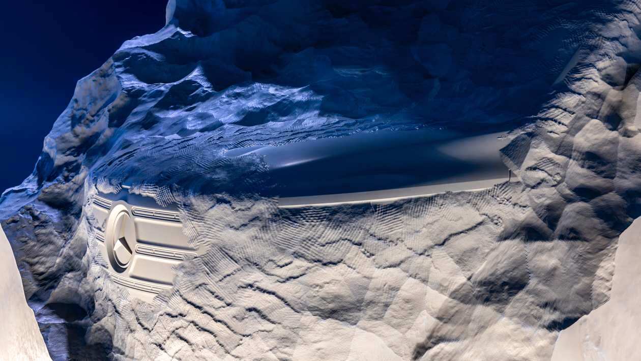 Это может быть самый странный тизер Мерседеса до сих пор — совершенно новый фургон Sprinter, высеченный из одного куска камня.