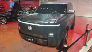 Cyber X имеет квадратный, вертикальный дизайн, несмотря на то, что это электромобиль, что говорит о том, что MG отдает предпочтение жесткому внедорожному стилю над эффективностью.