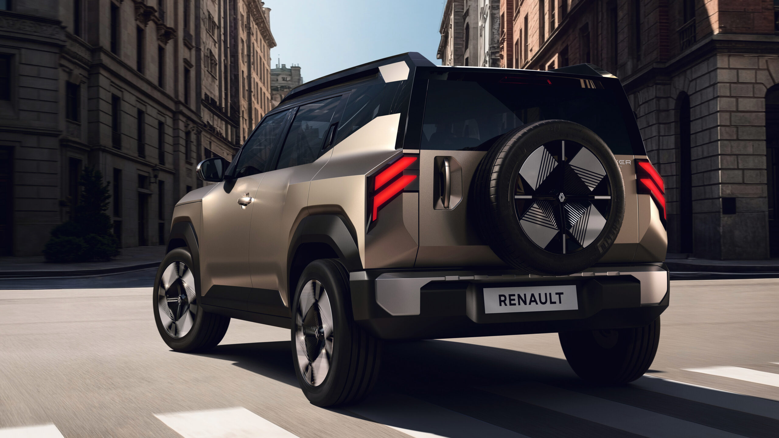 Конечно, Renault уже строит внедорожник B-сегмента в виде Captur, но эта модель использует совсем другой подход. С точки зрения дизайна, Renault, похоже, черпал вдохновение из сосредоточенных внедорожников, таких как Defender или Suzuki Jimny, с почти несуществующими передними и задними навесами, капотом в стиле клеща и почти вертикальной задней двери, несущей запасное колесо.