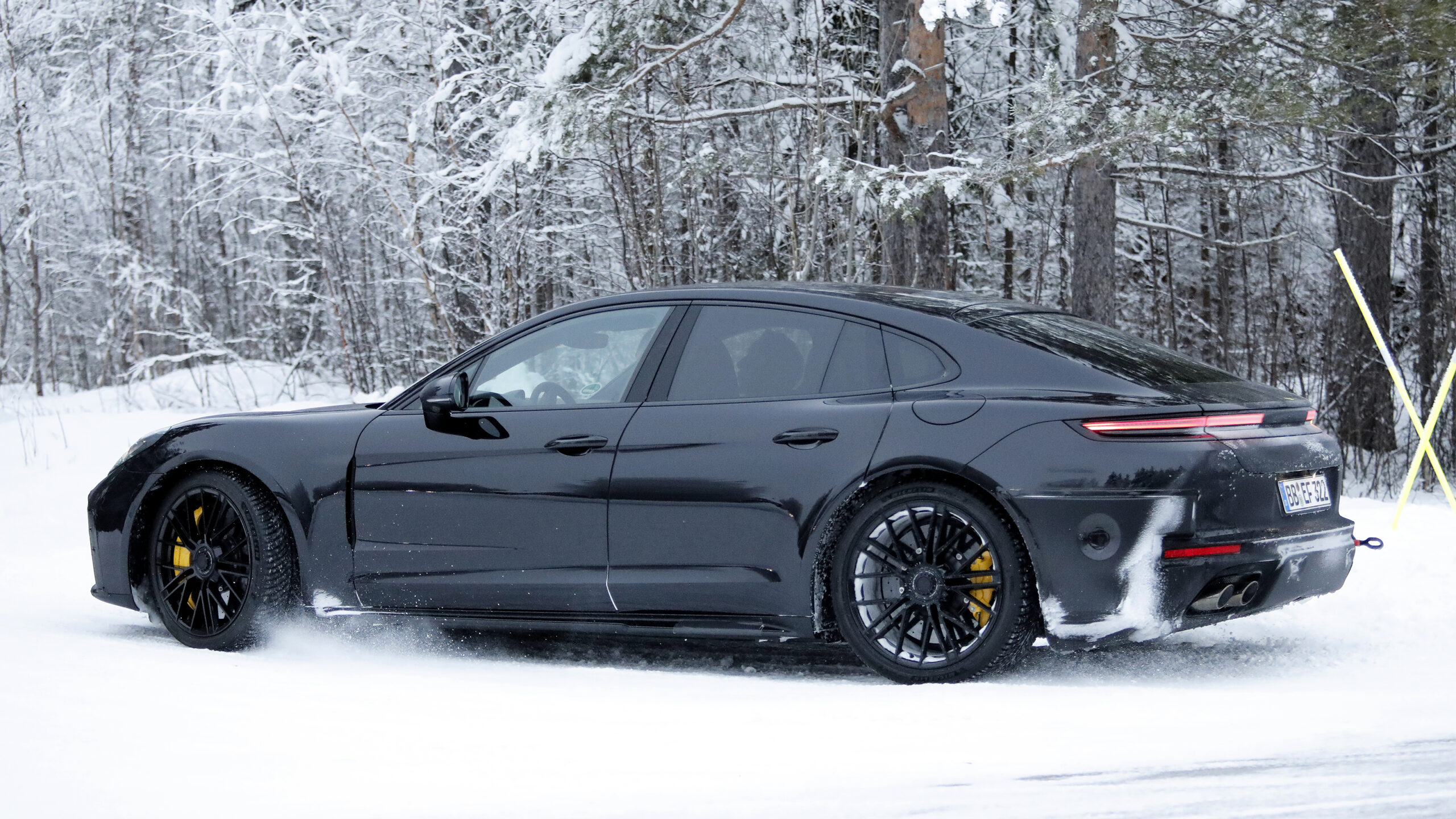 Этот конкретный прототип является высокоспециализированным гибридом, что очевидно по центральным колесам «Turbo», керамическим карбоновым тормозам и левостороннему зарядному клапану. Все это говорит о том, что это разработка существующих гибридов Turbo или Turbo S e, или, возможно, даже новый, более высокопроизводительный производный.