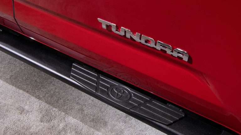 Выточенные колесные арки добавляют некоторого визуального интереса к боковому профилю, как и встроенный задний бампер, который заменяет более традиционный отдельный стальной элемент. Toyota хотела придать новой Tundra дозу современности с помощью затемненных передних и средних стоек, которые придают теплице вид навеса и подчеркивают ее большие и широкие окна. Как и прежде, Tundra CrewMax будет предлагать заднее окно, которое опускается в переборку, в то время как Double Cab без удлиненной кабины получит горизонтальный слайдер.