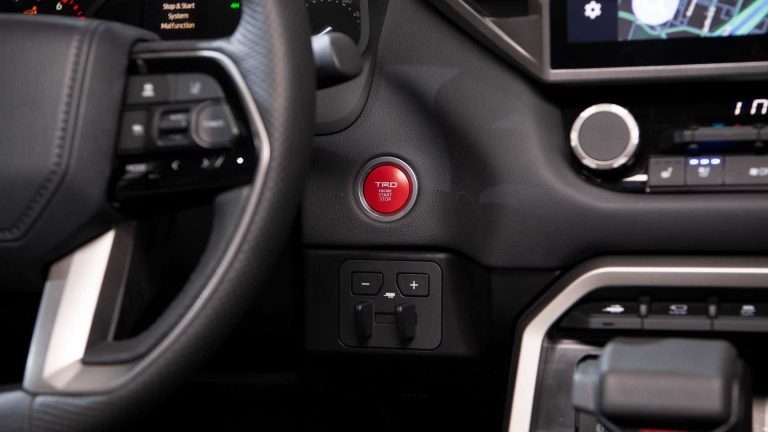 Гибридный двигатель входит в стандартную комплектацию TRD Pro, что нас устраивает, поскольку электродвигатель должен обеспечивать хороший толчок крутящего момента на низких оборотах при движении по бездорожью. Трансмиссия i-Force Max также будет доступна в комплектациях Limited, Platinum и 1794 Edition, в то время как базовый SR и SR5 среднего уровня получат только негибридный V6 с турбонаддувом. Пакет TRD Off-Road также будет доступен на большинстве уровней отделки салона, включая однотрубные амортизаторы Bilstein, Crawl Control и Multi-Terrain Select.