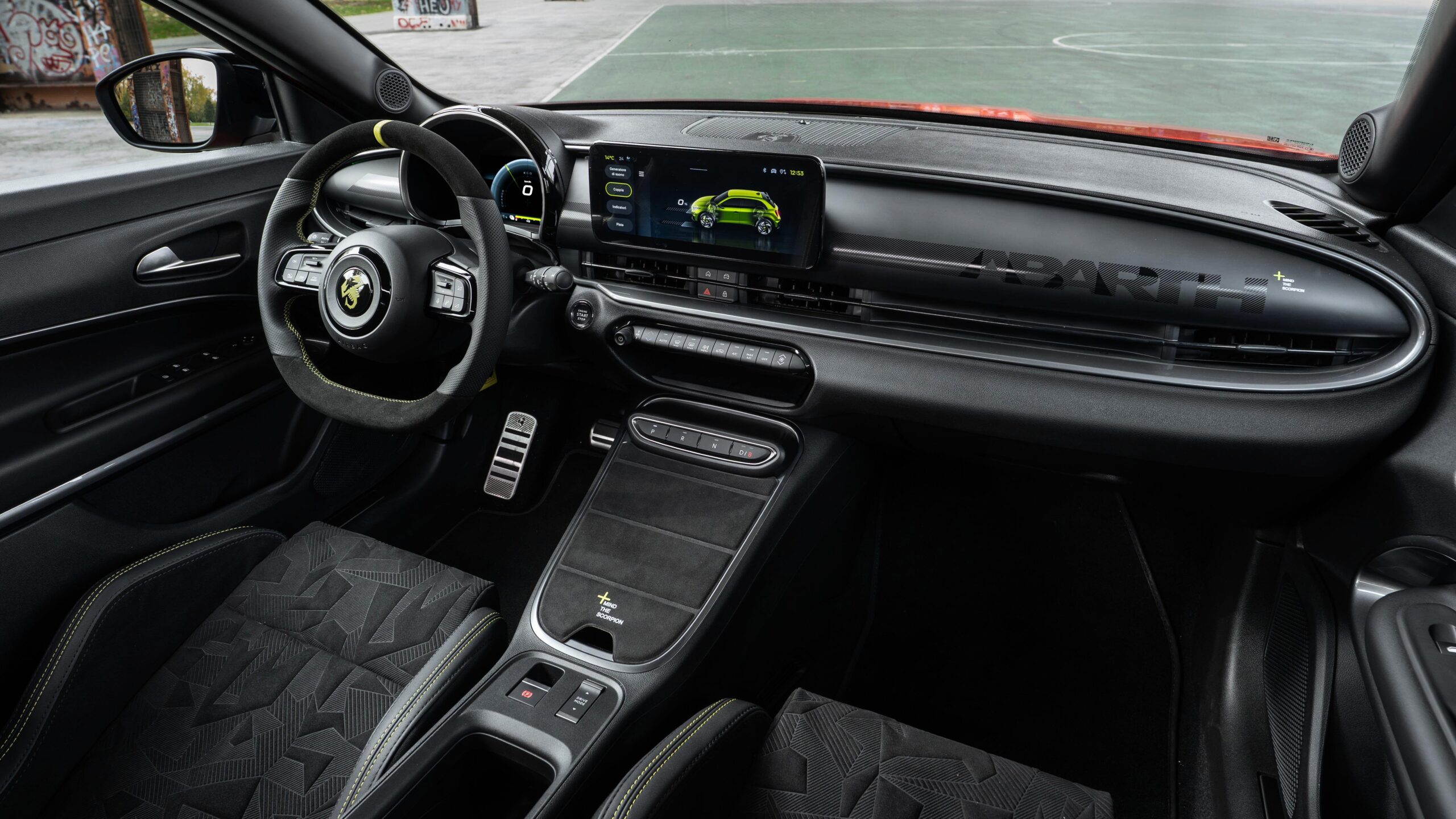Уровни оснащения отражают уровни уходящей линейки Abarth 600e, поэтому Turismo получает тот же семидюймовый дисплей водителя в сочетании с 10-дюймовным центральным сенсорным экраном, безключием, стержниками с датчиками дождя и спортивными сиденьями. Competizione добавляет интегрированный навигационный спутник, адаптивный круиз-контроль, обнимающие кузов ковчежные сиденья Sabelt и генератор звука, который мы обнаружили в нашем долгосрочном тестовом автомобиле Abarth 600е, чтобы быть немного хитроумным.
