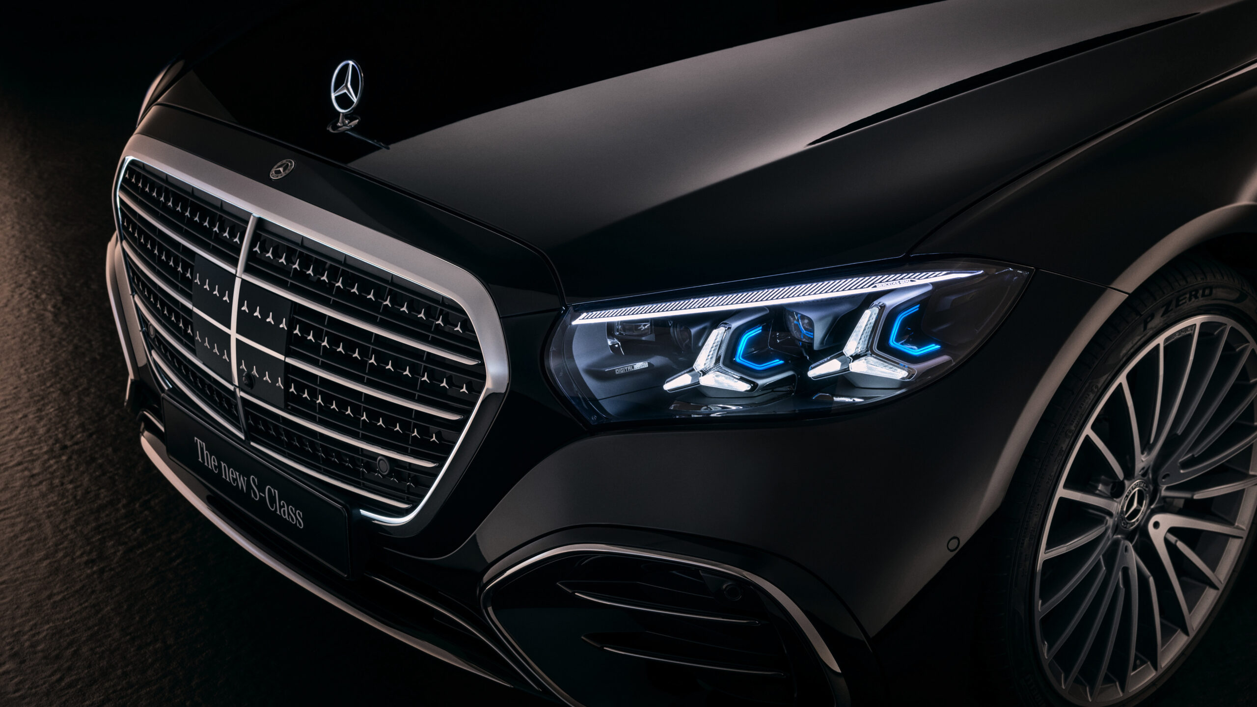 Пересмотренный S-класс сохранил свою скромную личность, но делает еще больше заявления, потому что и без того внушительная решетка на 20 процентов больше, украшена десятками крошечных хромированных трехконечных звезд и освещена.