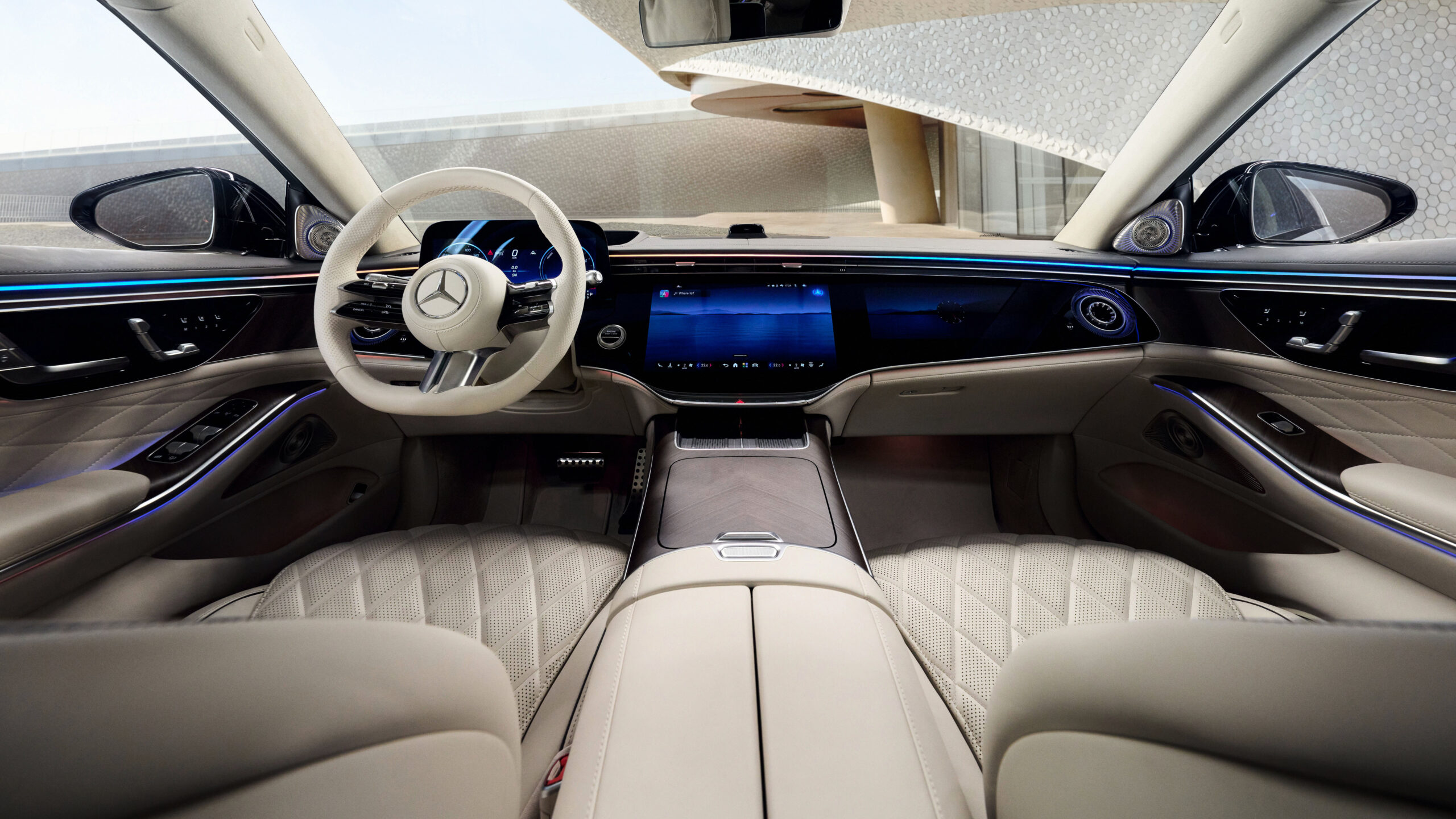 Это море экранов в новом S-классе работает с самой последней версией информационно-развлекательной системы Mercedes MBUX, в которой представлен виртуальный ассистент на базе ИИ, объединяющий входные данные от ChatGPT, Microsoft Bing и Google Gemini, чтобы облегчить взаимодействие. Навигационная система также основана на Google Maps, а интерфейс «нулевого слоя» предлагает водителю все функции, которые они регулярно используют или могут захотеть на домашнем экране.