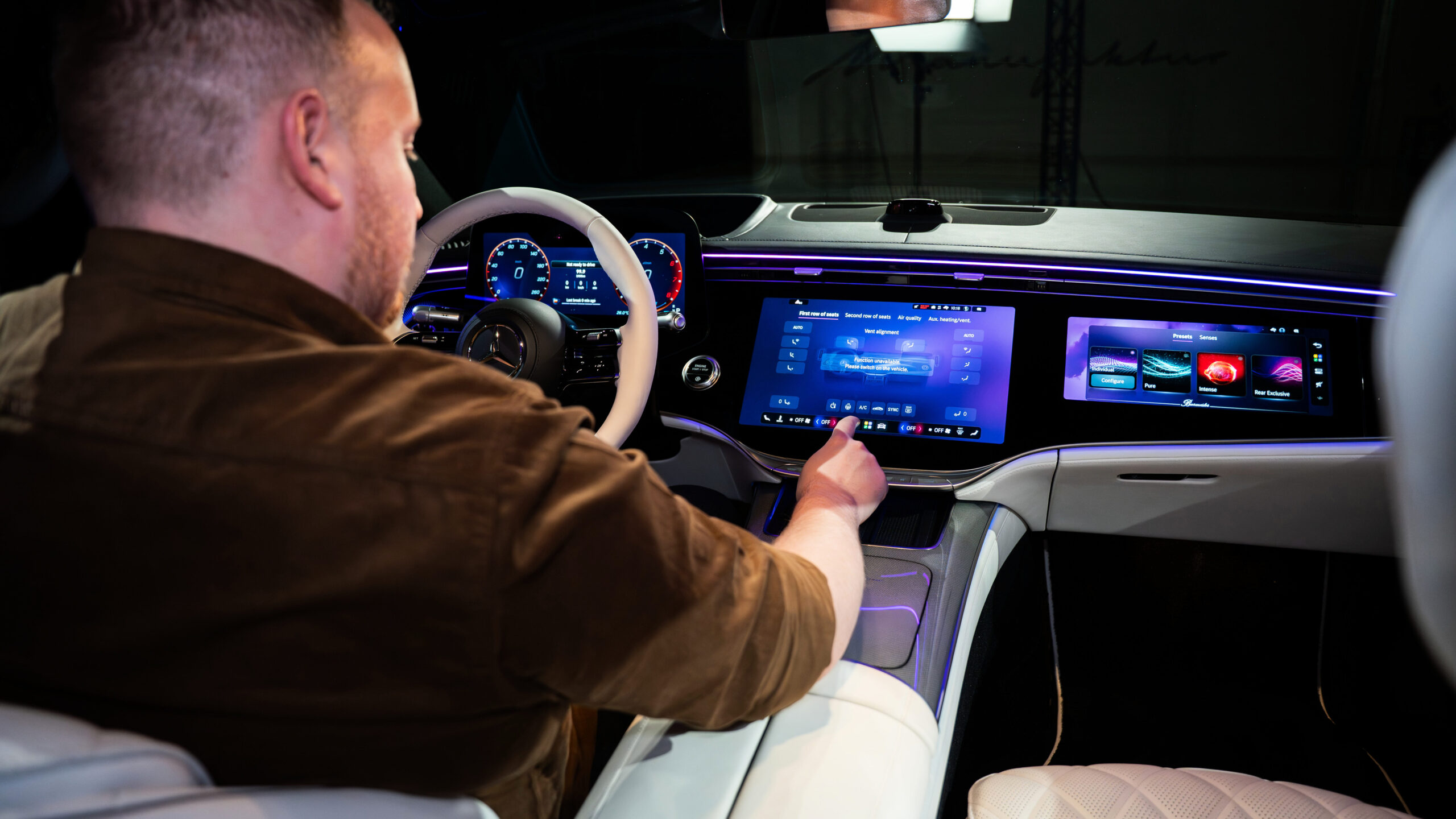Трансформация продолжается внутри, где простой портретный сенсорный экран, найденный в уходящем в отставку S-классе, исчез, его заменил то, что Mercedes называет Superscreen. Каждая новая модель будет иметь 14,4-дюймовый центральный сенсорный дисплей и 12,3-дюймов дисплей пассажира под одним куском стекла, а также 12,3 дюймов цифровой приборной панели.