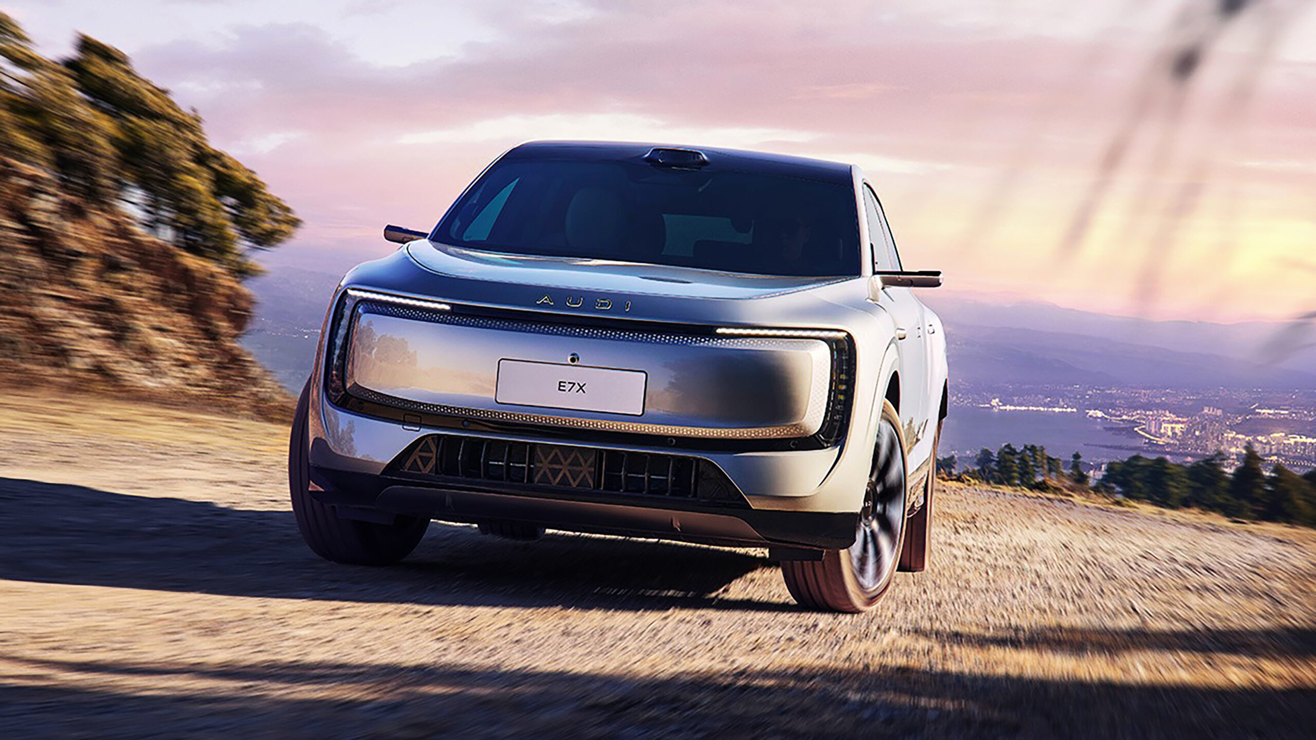 Разработанные с использованием новой технологии EV, автомобили AUDI находятся на новой «продвинутой оцифрованной платформе», и мы уже опробовали ее в первом автомобиле фирмы, E5 Sportback. Как и E5 Sport back, внедорожник E7X очень точно следует дизайну своей концепции с смелым стилем и, в частности, нигде не используется логотип Audi с четырьмя кольцами.