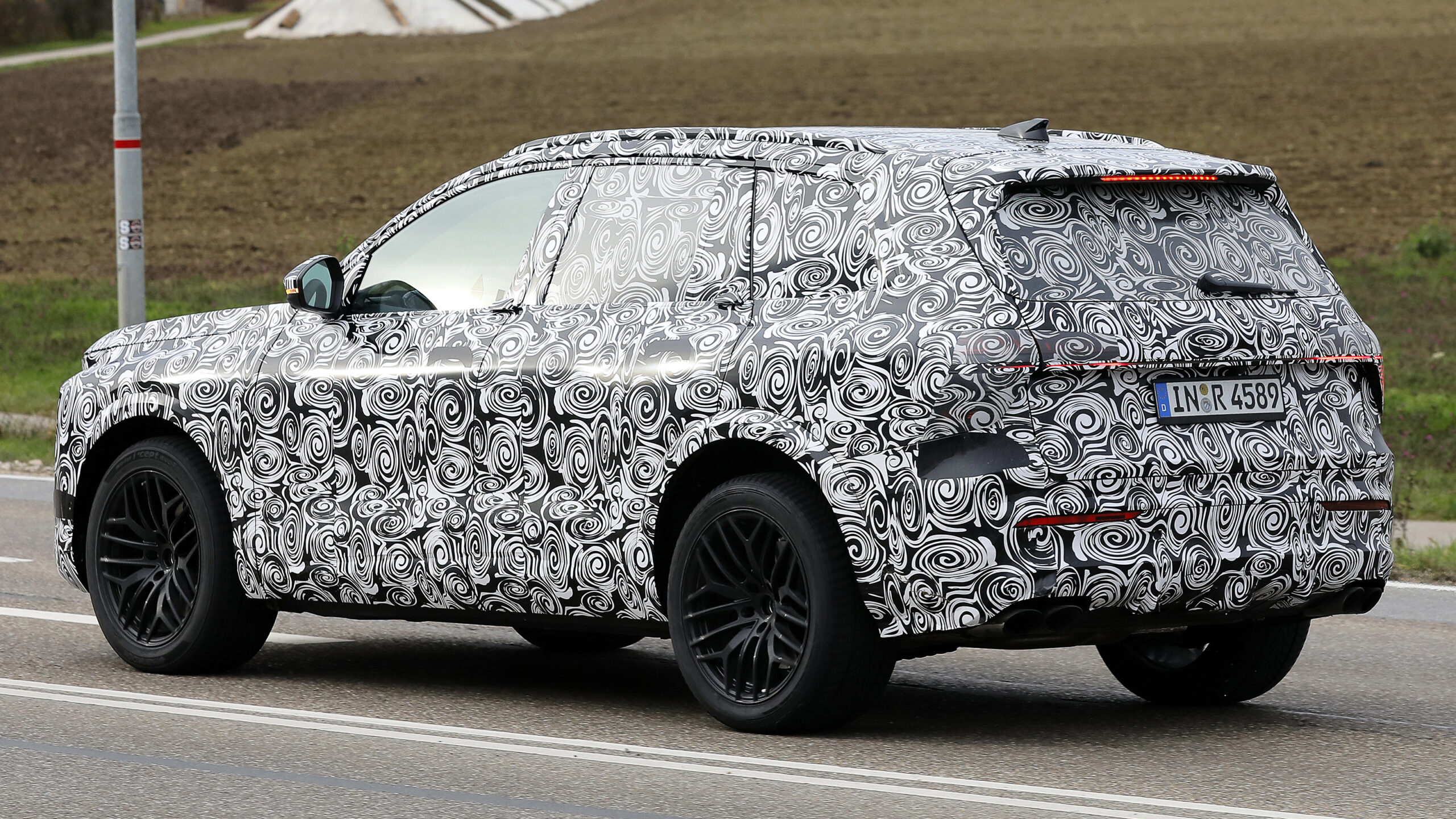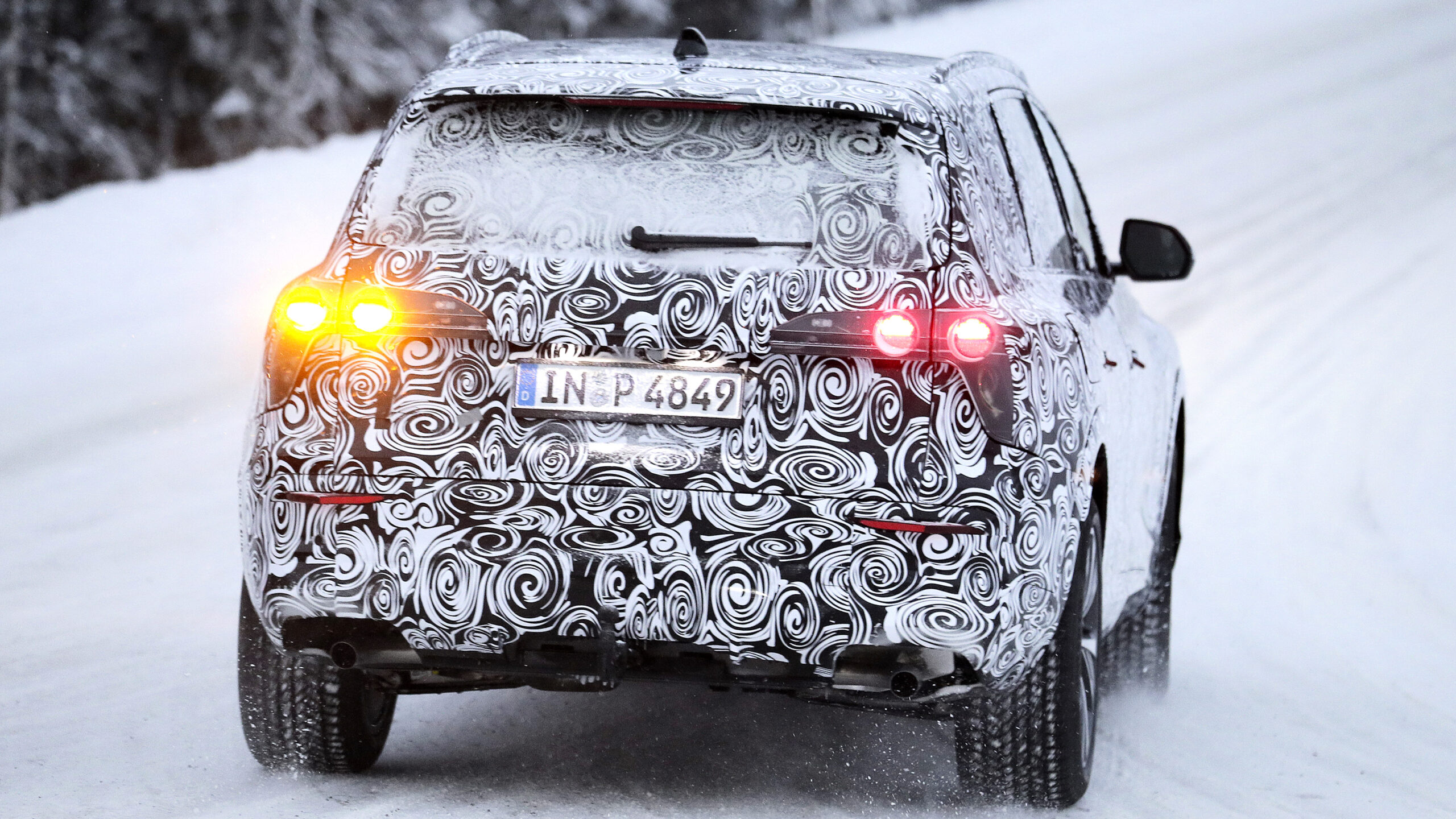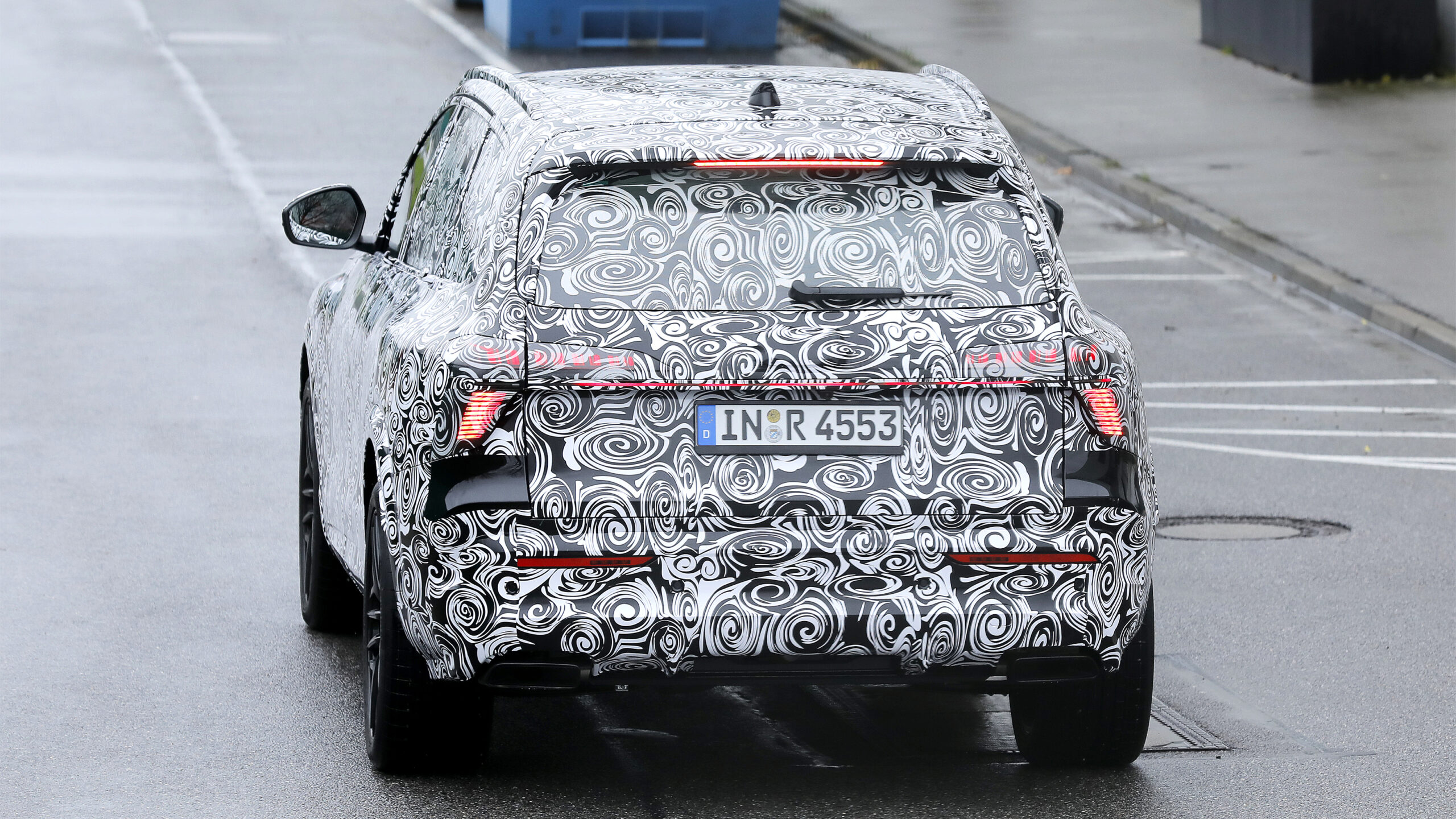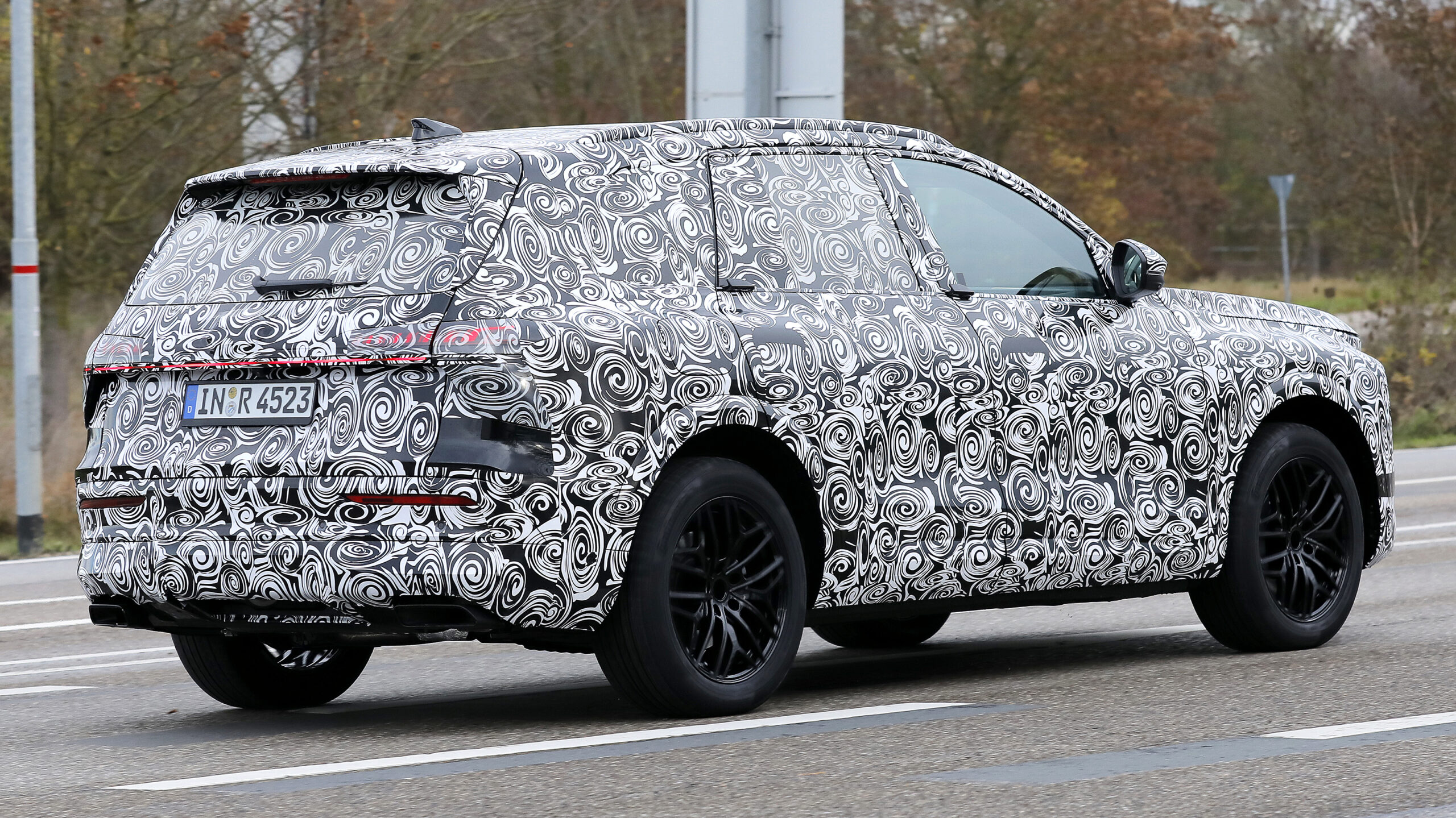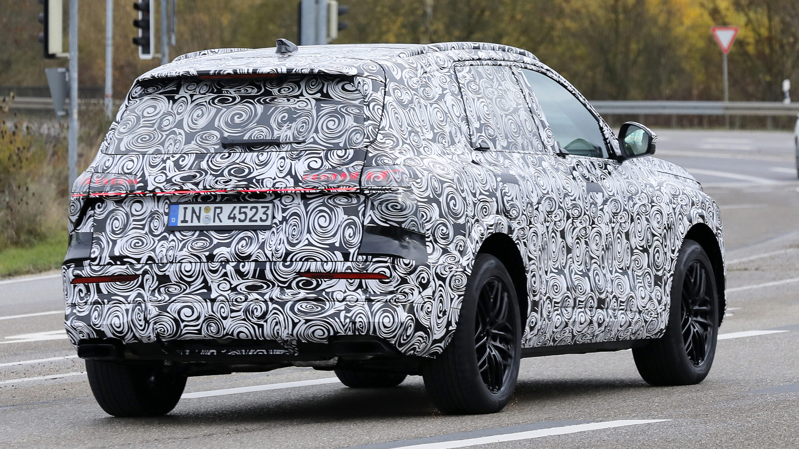 Общая форма кузова похожа на текущую модель, но заднее стекло выглядит немного менее гравированным для более высокого бокового профиля — возможно, это преднамеренный шаг, чтобы дистанцировать Q7 от более гладкого Q8. Как это принято в Audis сейчас, есть полная ширина световой ленты на задней стороне.