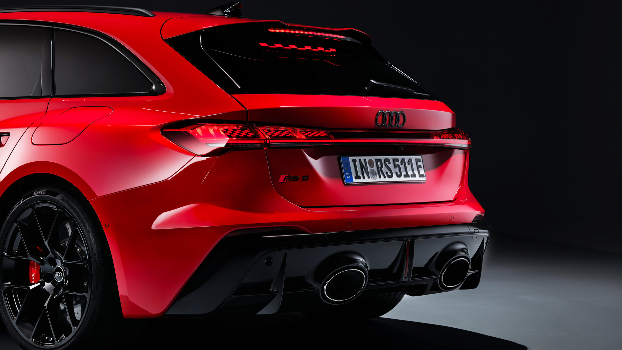 Задняя часть также драматична как в версиях седана, так и в версии Avant, потому что Audi установила два больших овальных выхлопных отверстия внутри заднего диффузора. В этом случае они ближе к центру заднего бампера из-за сложного глушителя, который находится позади.