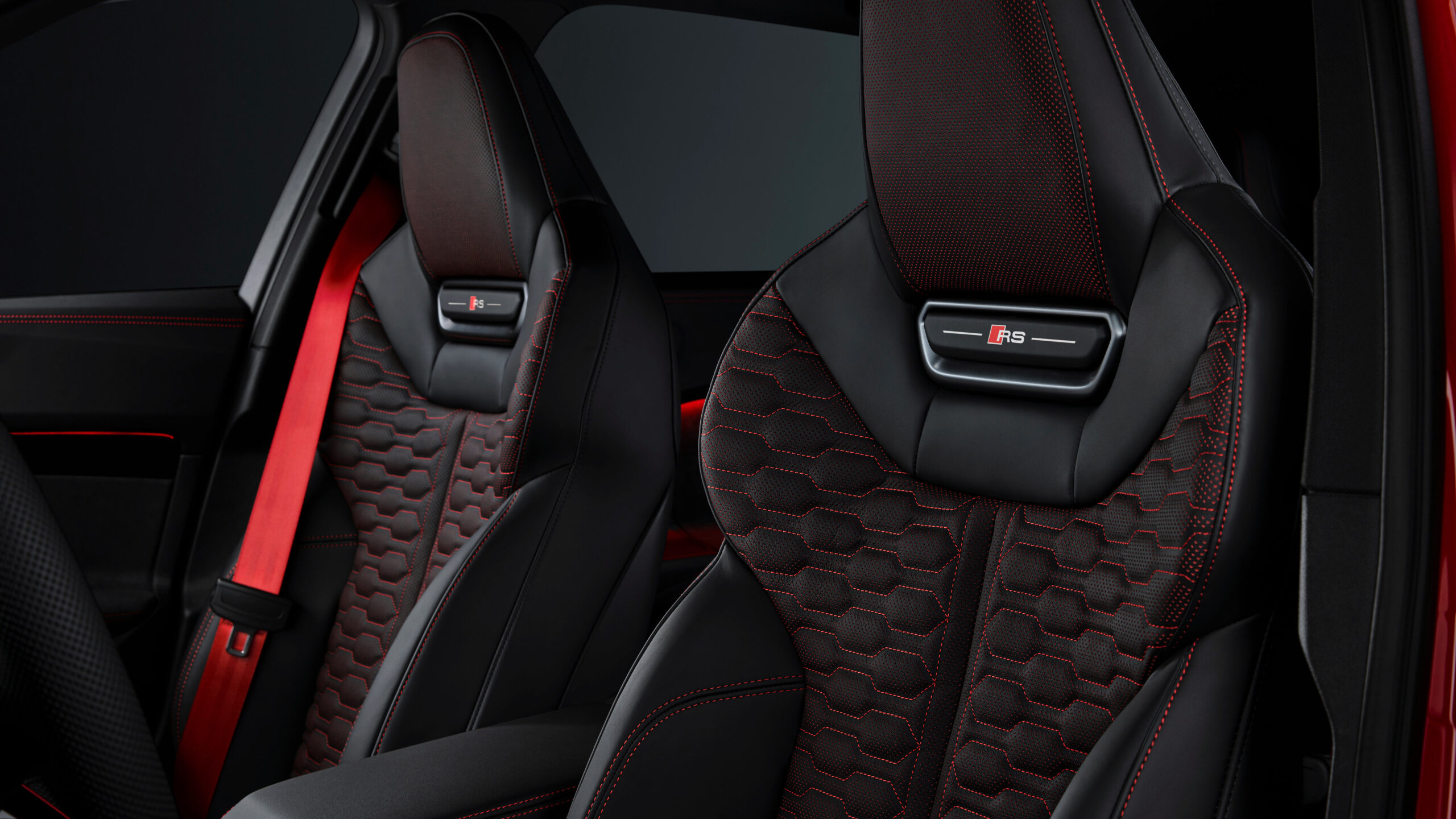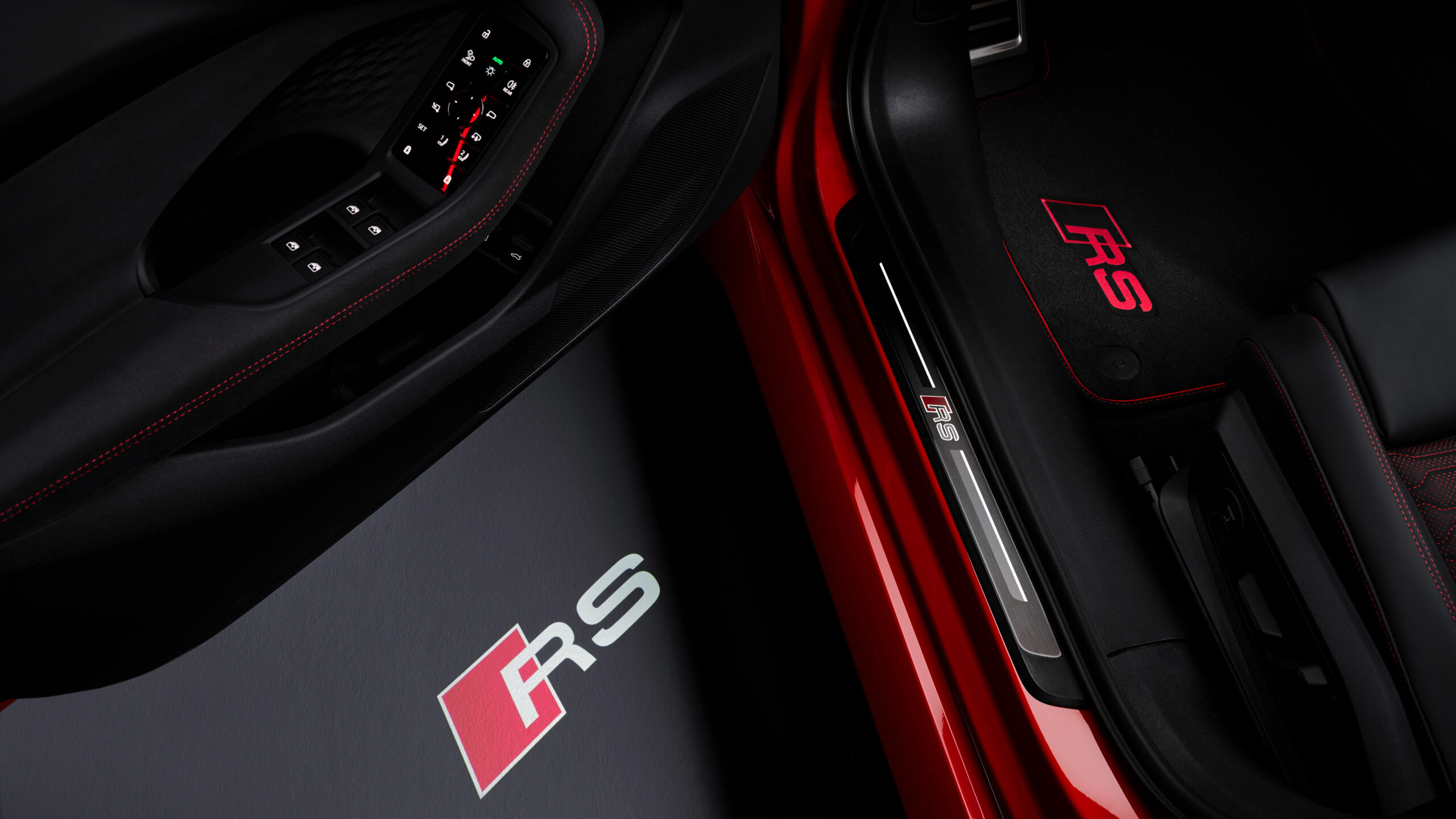 Внутри применяется новый экранный дизайн Audi, но есть свежий набор спортивных сидений и элементов внутренней отделки из углеродного волокна. В цифровых интерфейсах также есть ряд новых графических элементов Audi Sport, а рулевое колесо имеет кнопку Boost, которая разблокирует максимальную мощность и крутящий момент в течение 10-секундного периода независимо от выбранного режима управления.