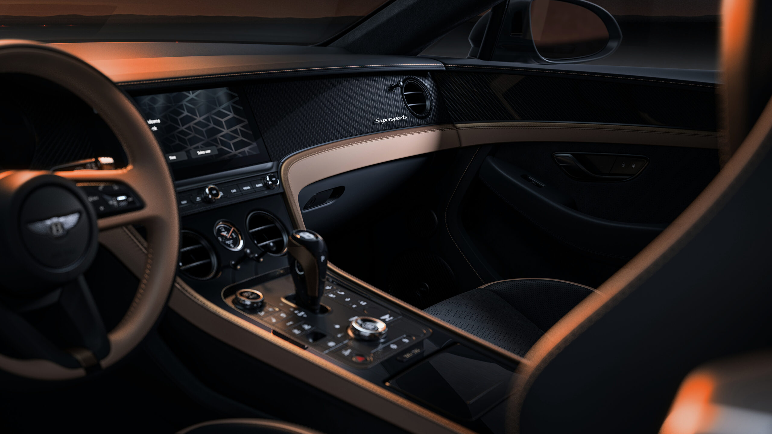 Как и предыдущий Continental GT3-R, новый Supersports — это всего лишь двухместный, с ванной из углеродного волокна, где обычно находятся задние сиденья. На DashCoinboard больше углеродных волокон, а внутри легкие, более сильно подкрепленные сиденья, которые были установлены ниже в автомобиле для более сфокусированного опыта вождения. Хотя это Bentley, в этой кабине также много изысканной кожи.