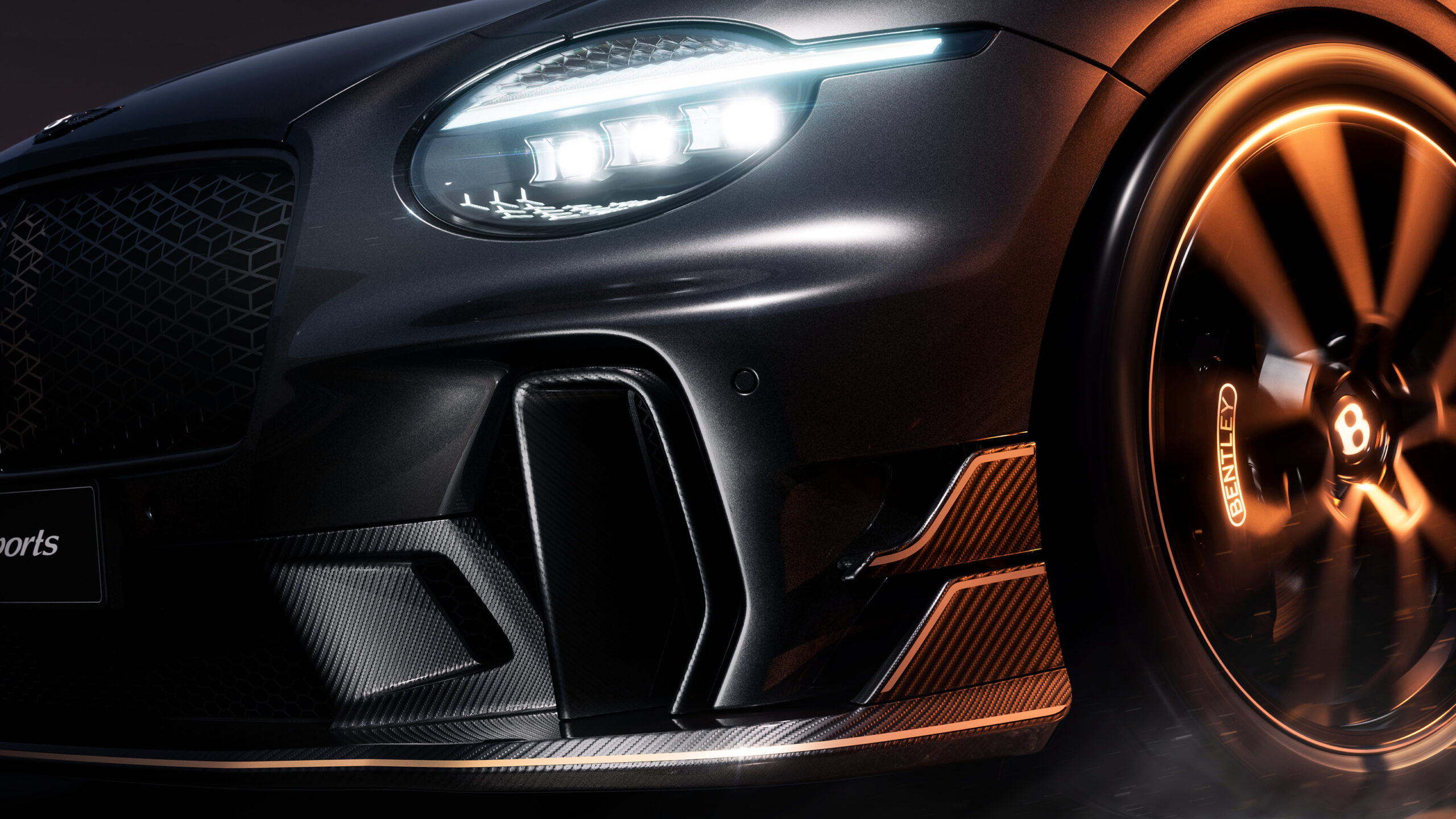 Агрессивный кузов не только придает новому Supersports подходящий брутальный внешний вид, он позволяет автомобилю производить более чем на 300 кг больше прижимной силы, чем у Continental GT Speed. Огромные входы в бампер также подают холодный воздух в передние тормоза и двигатель, в то время как B-образные лопасти за передними колесами направляют воздушный поток вниз по бокам автомобиля.