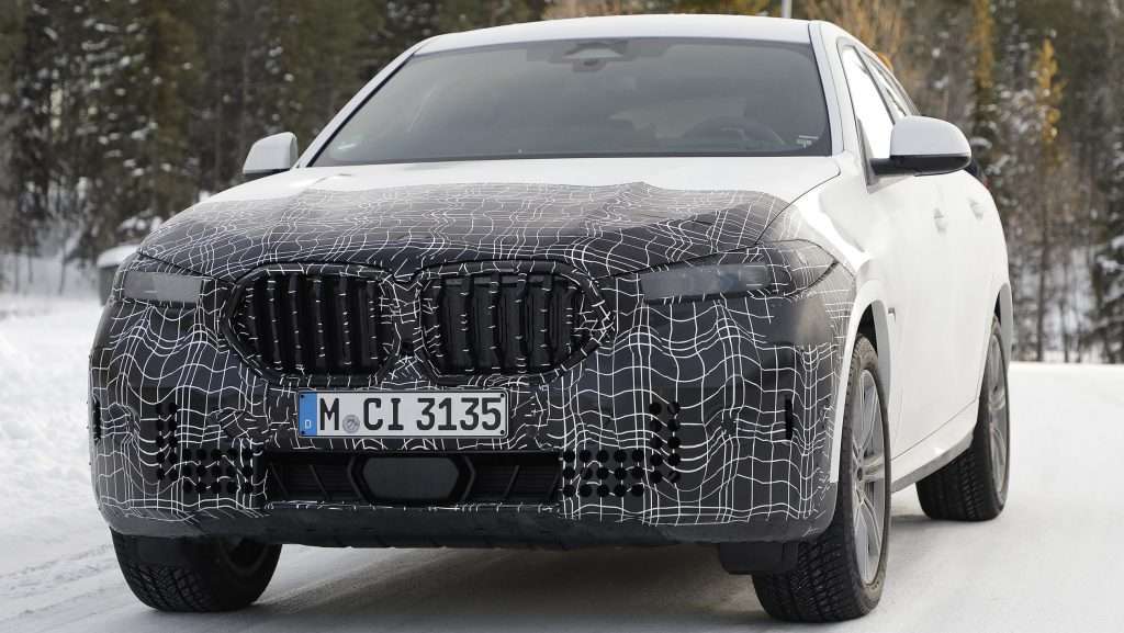 Спереди обновленный X6 получит набор тонких фар и переработанный бампер, хотя большая пара решеток радиатора нынешнего автомобиля не изменилась. Нижняя часть решетки теперь имеет увеличенный радарный датчик и агрессивные планки.