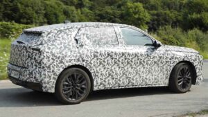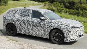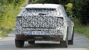 Корпус этого прототипа в основном покрыт камуфляжем, но ожидайте те же чистые линии и контрастирующие нижние секции кузова в глянце, чтобы компенсировать большие колеса и высокий тепличный дом.