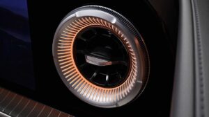 Фотографии также показывают кабину, в которой будет жить эта новая цифровая вселенная, с экраном, по-видимому, расположенным над широкой центральной консолью, в которой размещены тонкие вентиляционные отверстия и небольшой ряд физических кнопок.