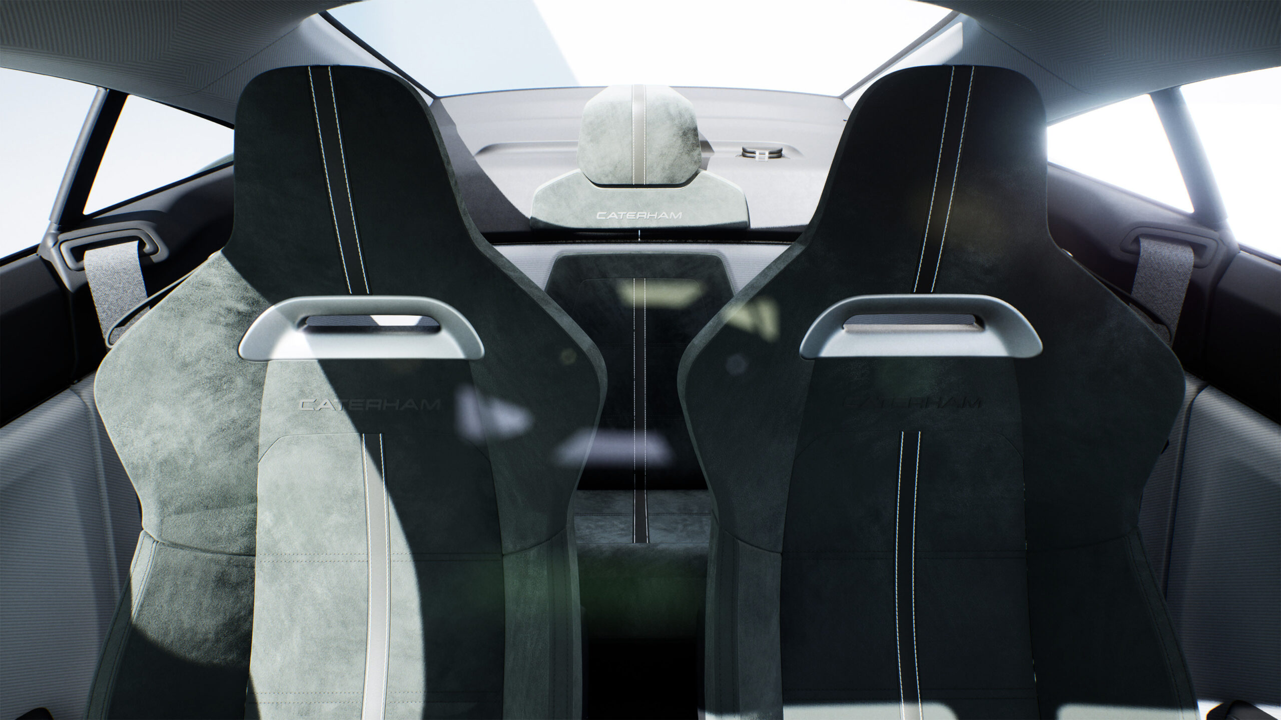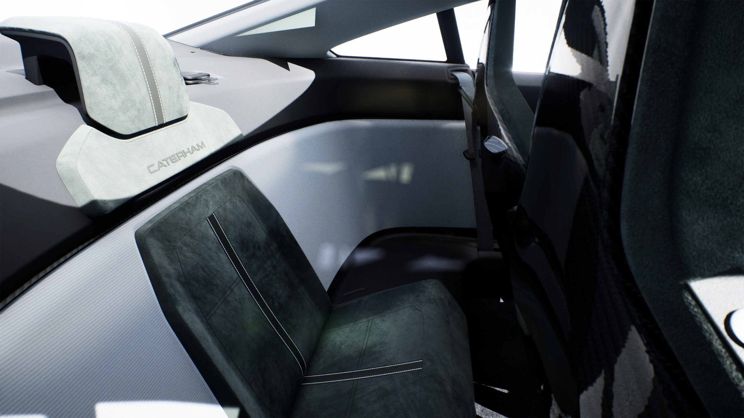 Внутренний отдел сосредоточен на водителе, с простым считыванием прибора, который включает в себя ключевую информацию. зеркальное отображение смартфона также будет включено, в то время как V предлагает три режима привода на выбор: нормальный, спортивный и спринт. Эти настройки регулируют вес рулевого управления и реакцию/ускорение дросселя для различных условий вождения, говорит Caterham.