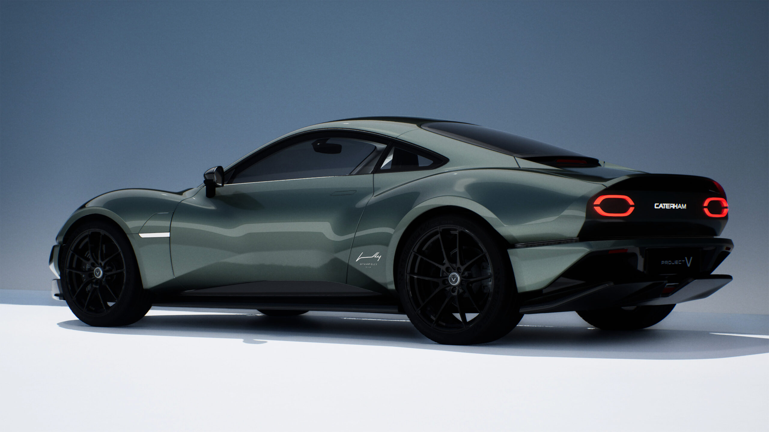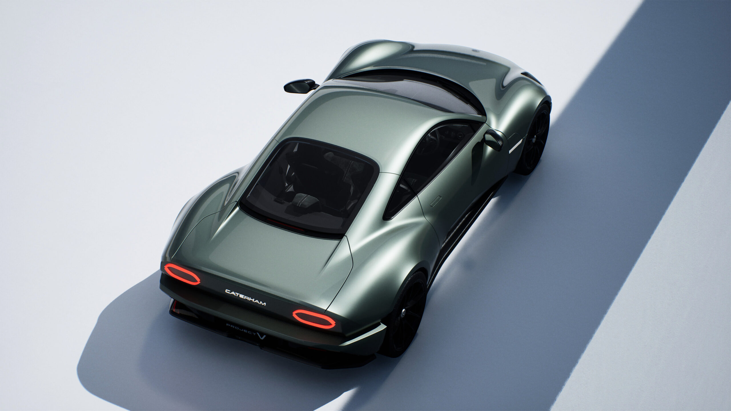 Когда дело доходит до дизайна автомобиля, Яннерелли подчеркнул, что «дизайн Caterham Seven прост и минималистский, он разработан для своей предназначенной функции, чтобы быть легким и приятным в вождении». С проектом V мы применяем эту философию к архитектуре спортивного купе, чтобы создать соблазнительный и вневременный силуэт. Каждая отдельная функция должна оправдывать себя с точки зрения веса, чтобы сохранить легкость и оптимизировать вовлеченность водителя.