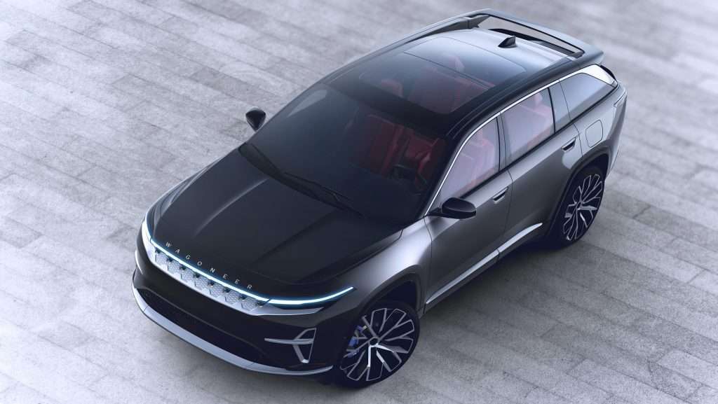 Снаружи кажется, что Wagoneer S мало чем отличается от нынешнего Jeep Wagoneer. Спереди, конечно же, есть решетка с семью планками (которая может быть освещена), сопровождаемая световой полосой во всю ширину и значком «Wagoneer» над ней.