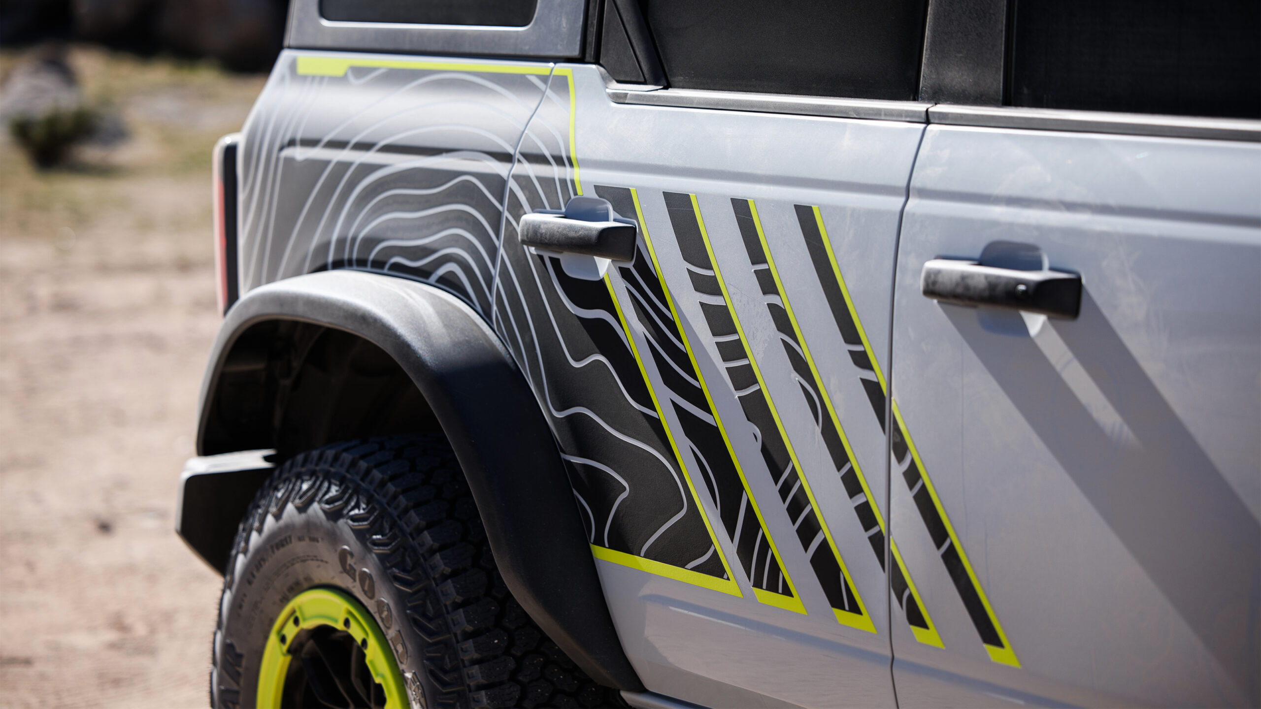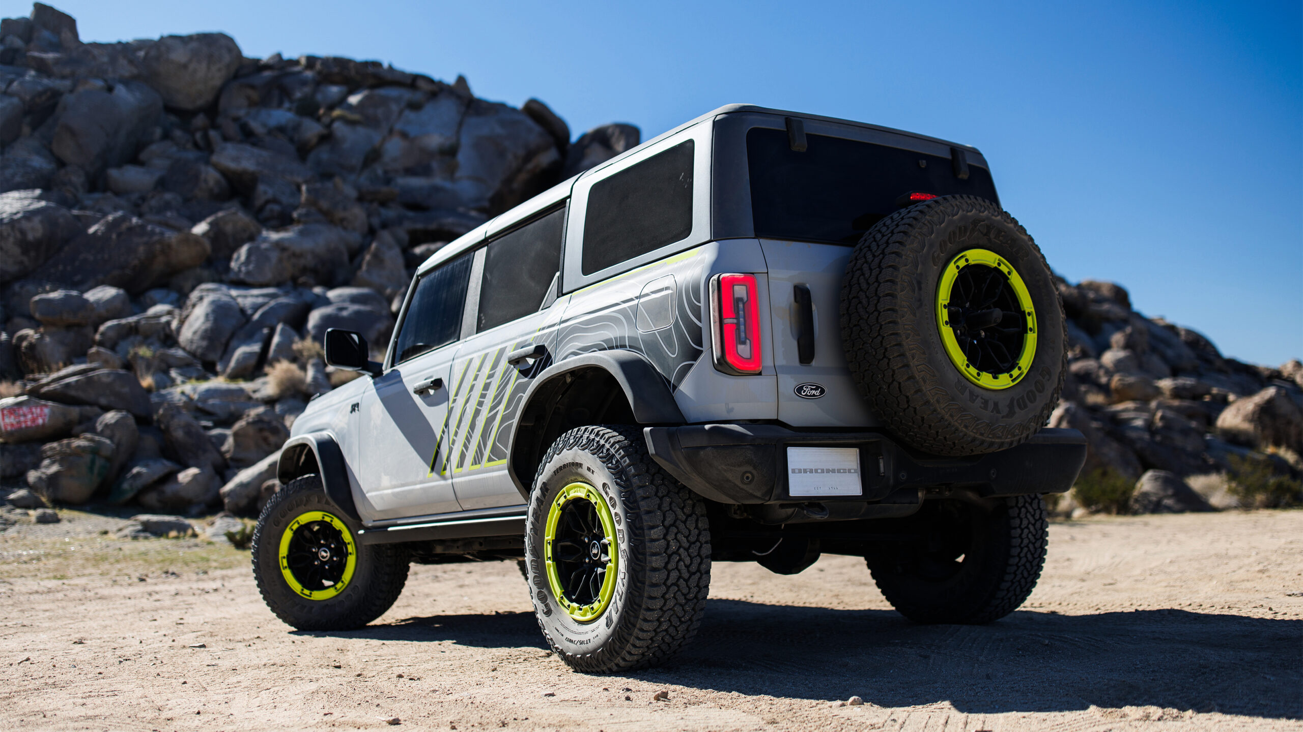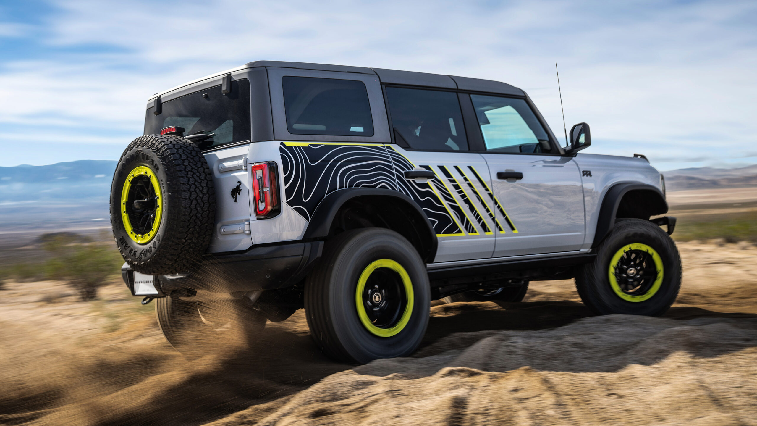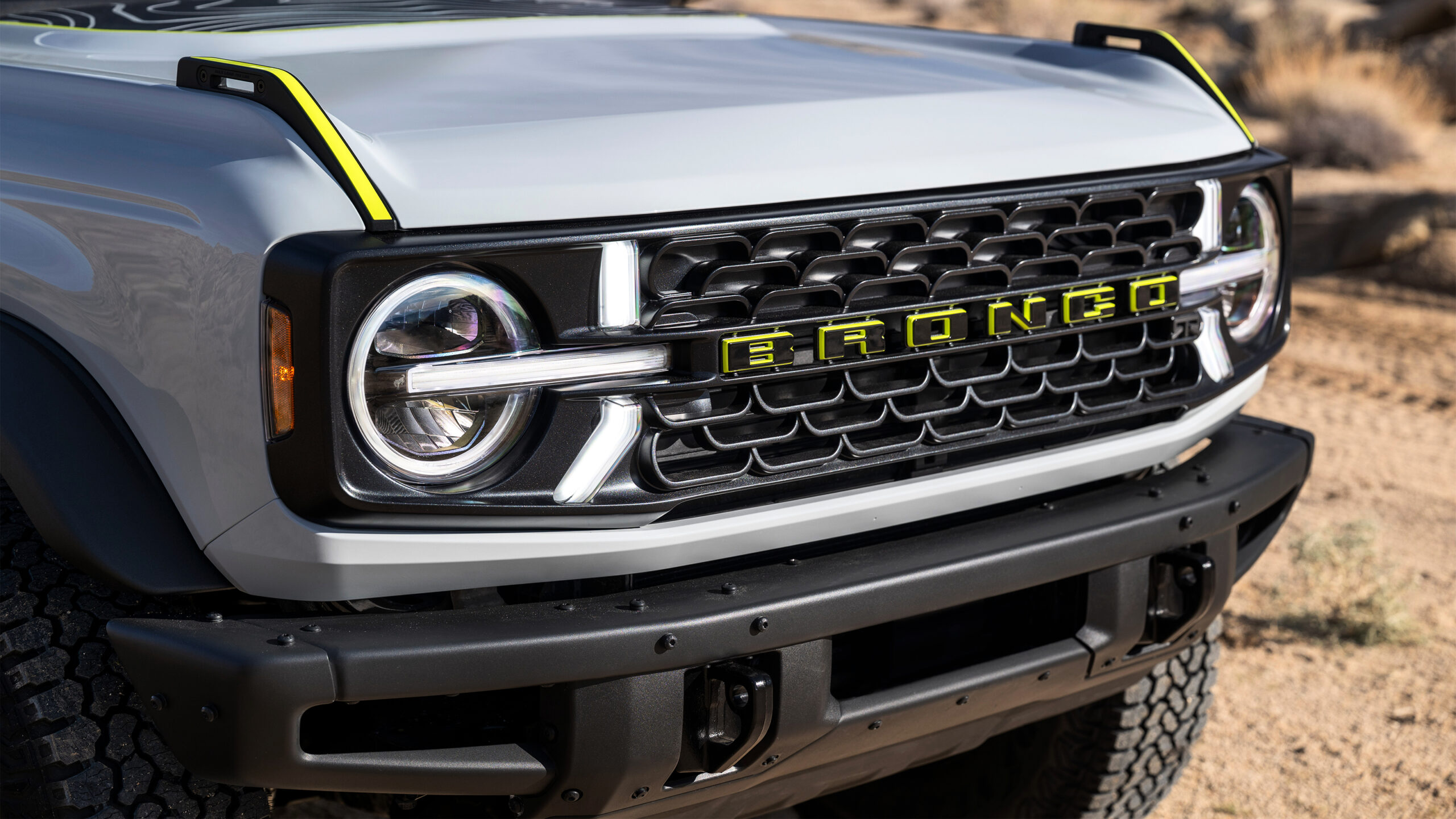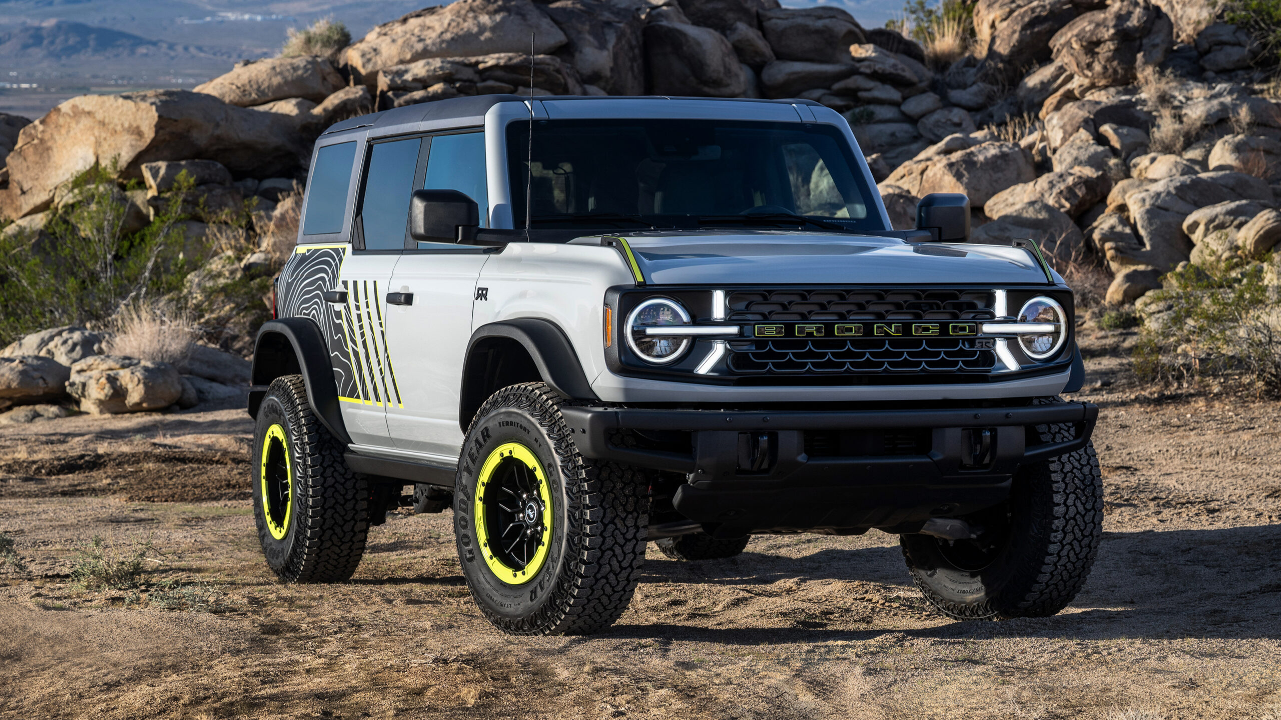 Визуально RTR имеет ту же основную кузовную конструкцию, что и обычный Bronco, а не более широкий Raptor, но диапазон кислотно-зеленых деталей и наклейки отмечают это как нечто более особенное. Носовой конус также уникален для RTR и включает в себя специальную сетку и светодиодную подпись освещения.