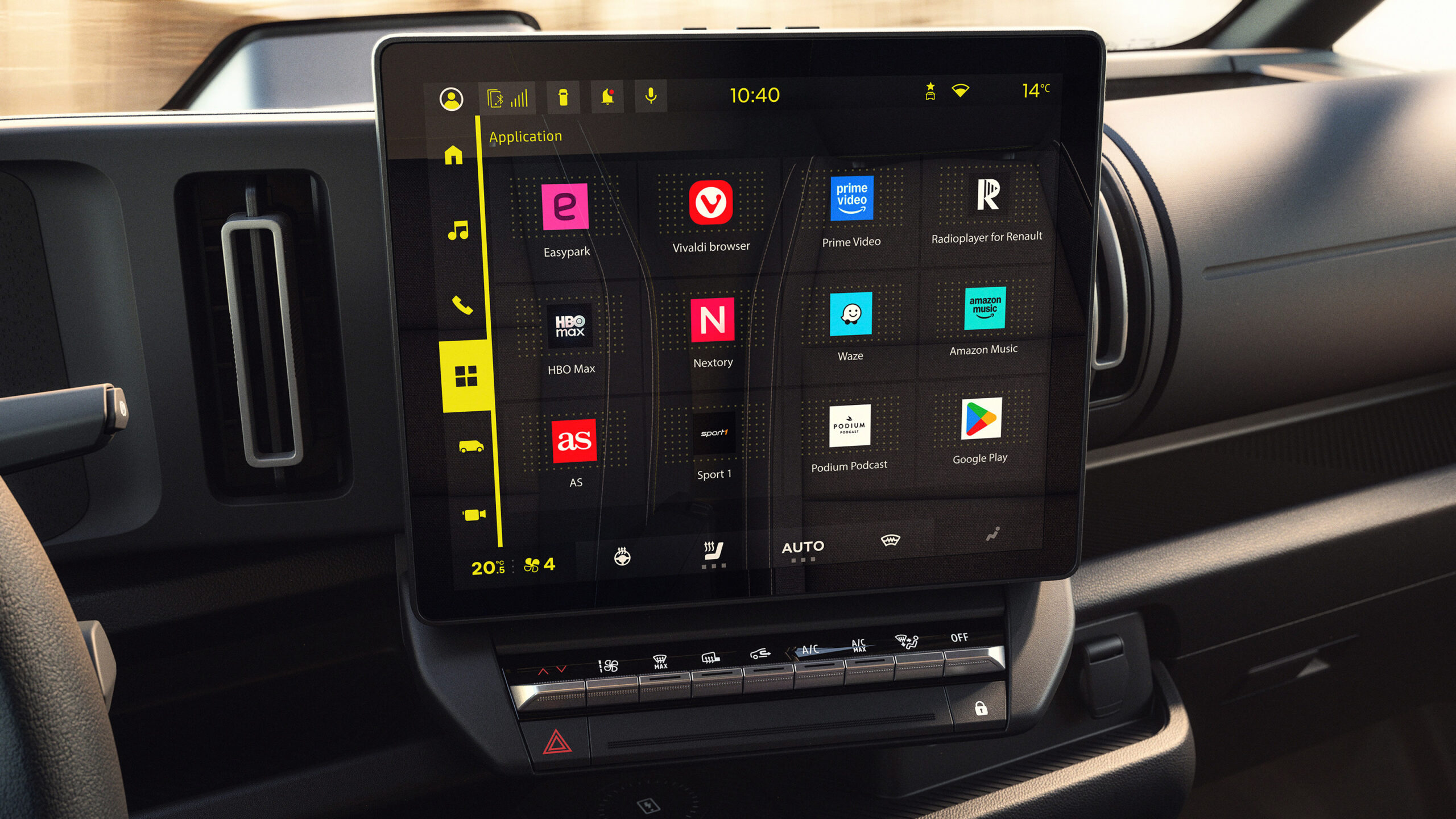 На основном сенсорном экране работает операционная система Android Automotive, как и в автомобилях Renault, поэтому предлагается множество совместимых приложений, помогающих в управлении автопарком. Подключение Wi-Fi позволяет осуществлять удаленные обновления в режиме реального времени, в то время как приложение Convertor Companion позволяет утвержденным сторонним инсталляторам обновлять и настраивать бортовые системы Trafic, чтобы обеспечить обновления, такие как преобразования синего света, дополнительное освещение и другие внешние устройства. Возможность Vehicle-to-Grid означает, что Trafic сможет питать устройства через свой привод, а также аккумулятор.