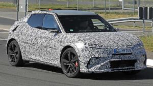 Последний прототип, который мы поймали на испытаниях, дал нам некоторые новые подсказки о том, как будет выглядеть серийный GV60 Magma, хотя мы ожидаем, что он не будет сильно отличаться от дикого GV60 Magma Concept, представленного в 2024 году.