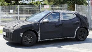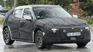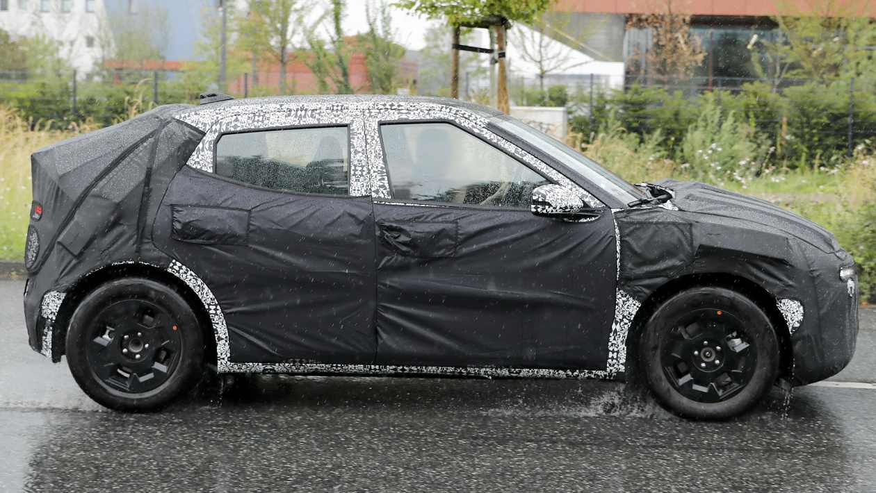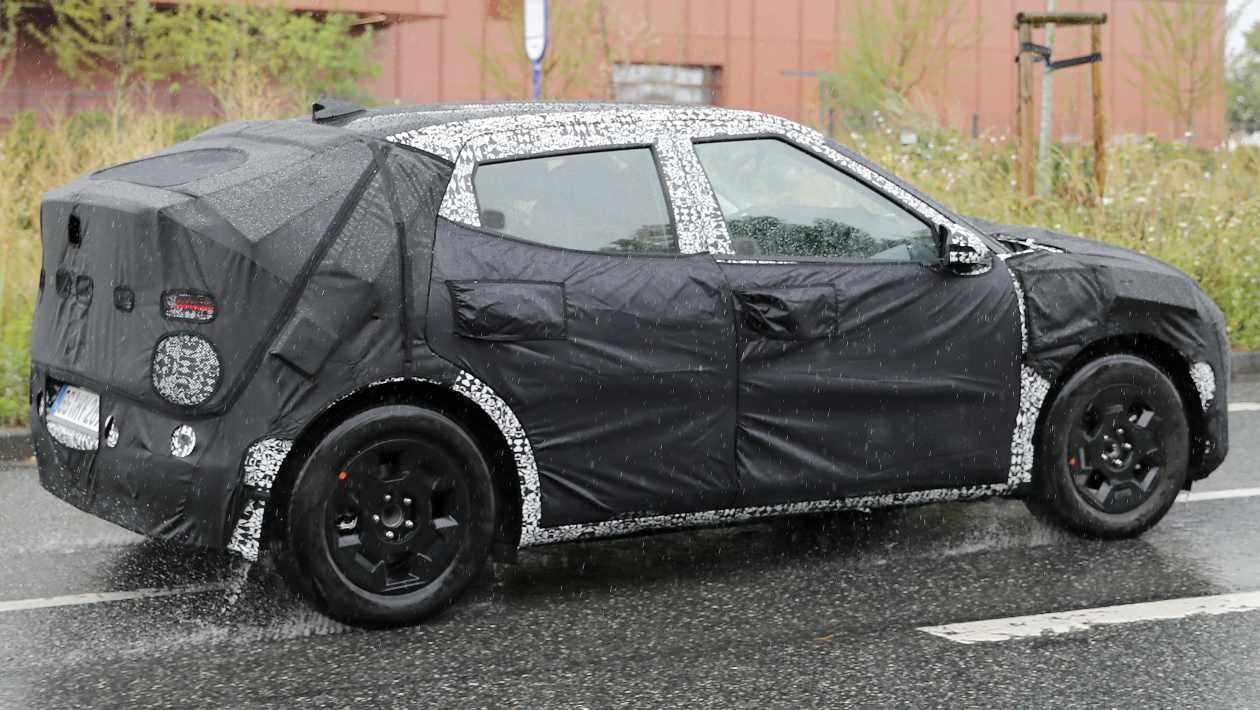 Считается альтернативой таким автомобилям, как Renault 4 E-Tech и Ford Puma Gen-E, а также предстоящей Kia EV2, Ioniq 2 будет практичным, супермини-размером EV с тонкими подсказками стиля SUV. Несмотря на то, что автомобиль на этих изображениях сильно обтянут камуфляжным покрытием, мы можем выделить несколько ключевых дизайнерских особенностей, включая знакомые пиксельные огни Hyundai, наклонную линию крыши и высокую губу салона.