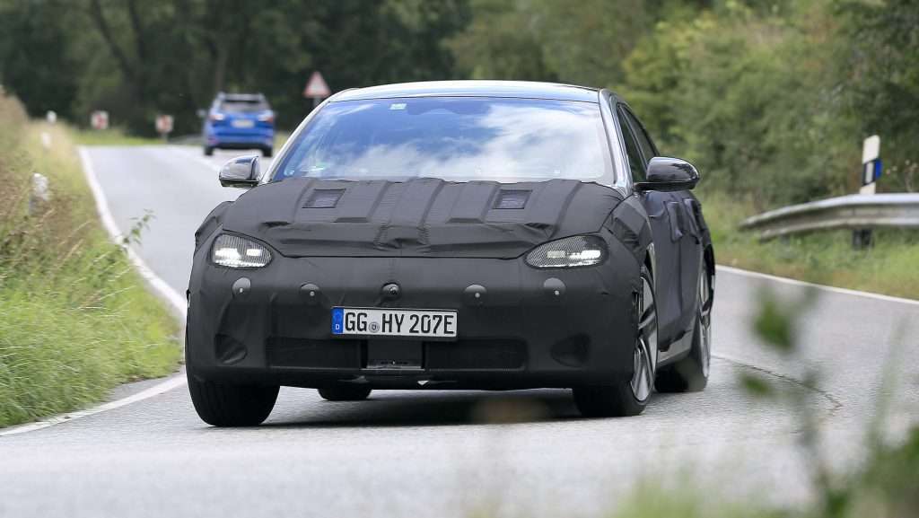 Таким образом, этот прототип все еще сильно замаскирован, чтобы скрыть эти поздние изменения. Они включают в себя изменение размера и стиля автомобиля, а также несколько более длинный кузов, о котором говорят южнокорейские автомобильные издания. Hyundai также теперь будет оснащать Ioniq 6 тем же аккумулятором на 77,4 кВтч, что и в Kia EV6, а не блоком на 73 кВтч, как в Ioniq 5.