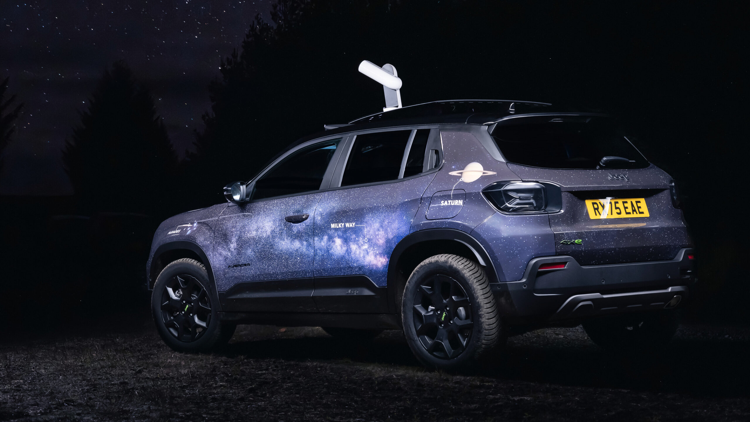 Поэтому бренд объединился с DarkSky UK, некоммерческой организацией, посвященной просвещению людей о их световом загрязнении и выводу их на открытый воздух, чтобы удивляться небу, и превратил свой Avenger 4xe в повсеместную машину для наблюдения за звездами.