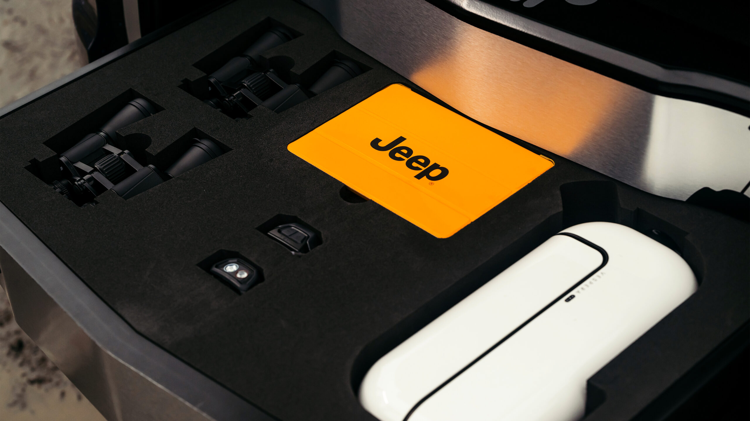 Небольшой внедорожник оснащен всем, что может понадобиться для наблюдения за звёздами. В багажнике вместимостью 325 литров находится специально изготовленный шкаф с биноклями, факелами для головы, перчатками с сенсорным экраном, водонепроницаемой одеждой и, конечно же, телескопом. Это телескоп Vaonis Vespera Pro Smart, который может быть установлен на крыше Avenger.