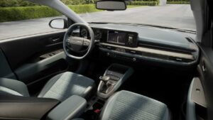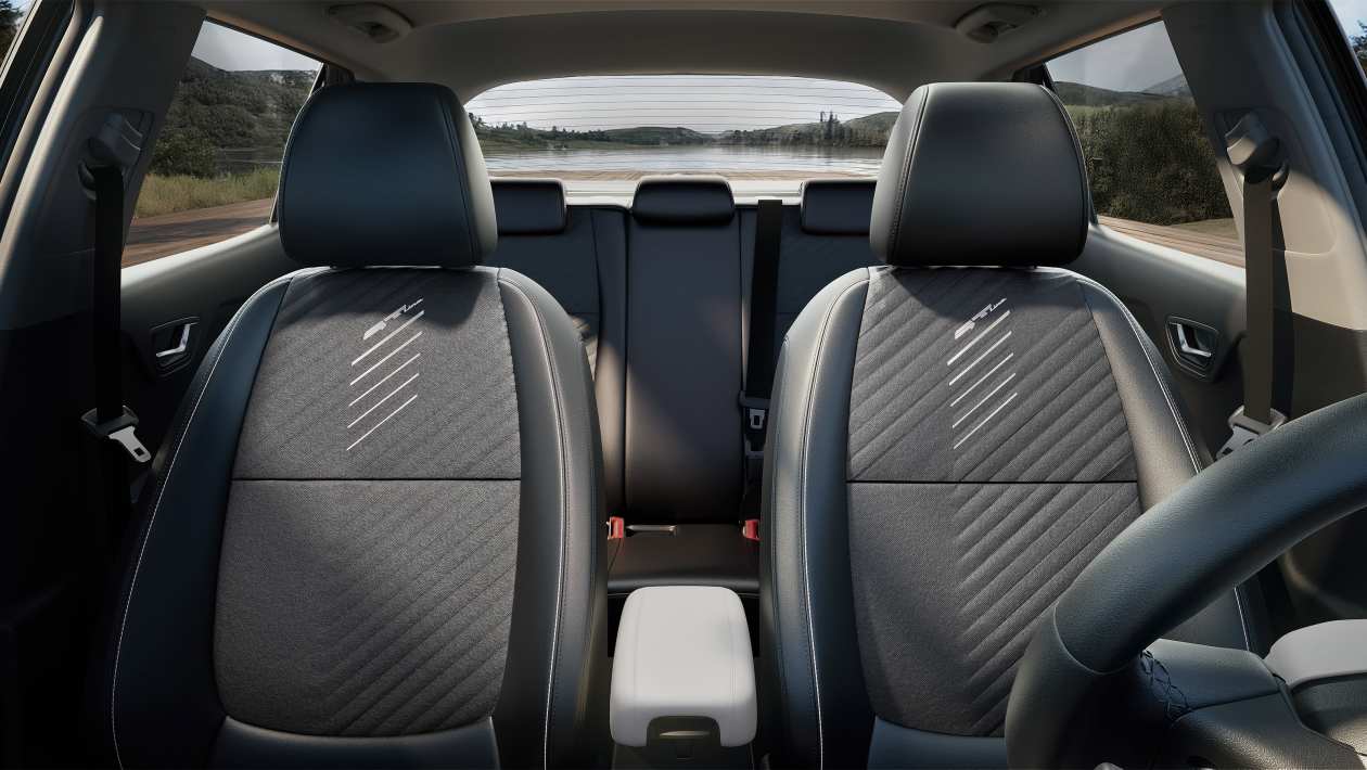 Внутри Stonic получает свою самую большую трансформацию, с значительным введением новых технологий. Предыдущая компоновка DashCoin была заменена панорамной конфигурацией с двойным дисплеем (на версиях GT-Line S), которая объединяет два высокоразрешительных 12,3-дюймовых экрана как для инфоразвлечений, так и для информации о водителе. Традиционные климат-контроли были заменены на мультимодный сенсорный дисплей, в то время как новое рулевое колесо, центральная консоль и порты быстрой зарядки USB-C завершают обновление.