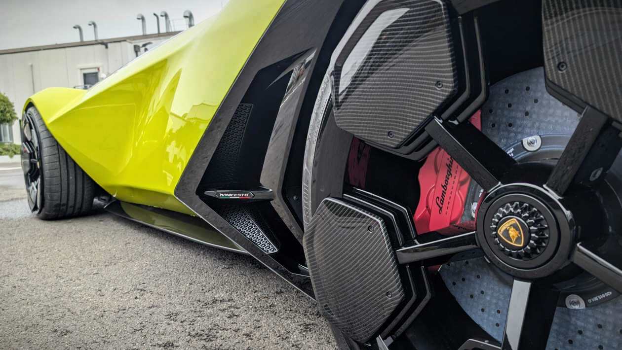 В отличие от других Lamborghinis, которые имеют относительно плоский дизайн задней части, задняя часть Манифеста очень резко сужается вверх, потому что она включает в себя огромный диффузор, похожий на Aston Martin Valkyrie или McLaren Speedtail. Может быть, нет никаких выхлопных наконечников в поле зрения, но это не значит, что это электромобиль. Задняя палуба имеет 12 ловушек, сигнализируя, что Lamborghini поместит там двигатель V12, если это возможно.