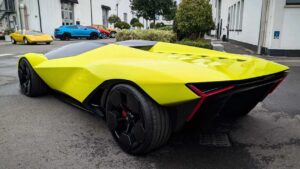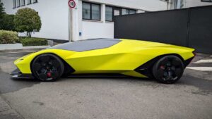 Впереди острый нос напоминает нам о старом Lamborghini Aventador, как и линия характера вдоль фланга автомобиля и выпуклое заднее колесное колесо. Между тем, гигантские элементы в переднем разделителе выглядят так, как будто они могли быть украдены со снежного плуга, что позволит им глотать воздух, чтобы охладить тормоза и генерировать прижимную силу.