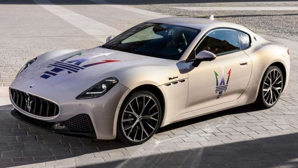 Вертикальные фары напоминают о последнем суперкаре Maserati, хотя длинные пропорции капота, остекление и тройные вентиляционные отверстия в переднем крыле аналогичны предыдущей модели. Также есть набор колес с алмазной огранкой в виде трезубца, а GranTurismo с двигателем внутреннего сгорания получает новый задний бампер с четырьмя выходами выхлопных труб. Тонкие светодиодные задние фонари также похожи на блоки MC20.