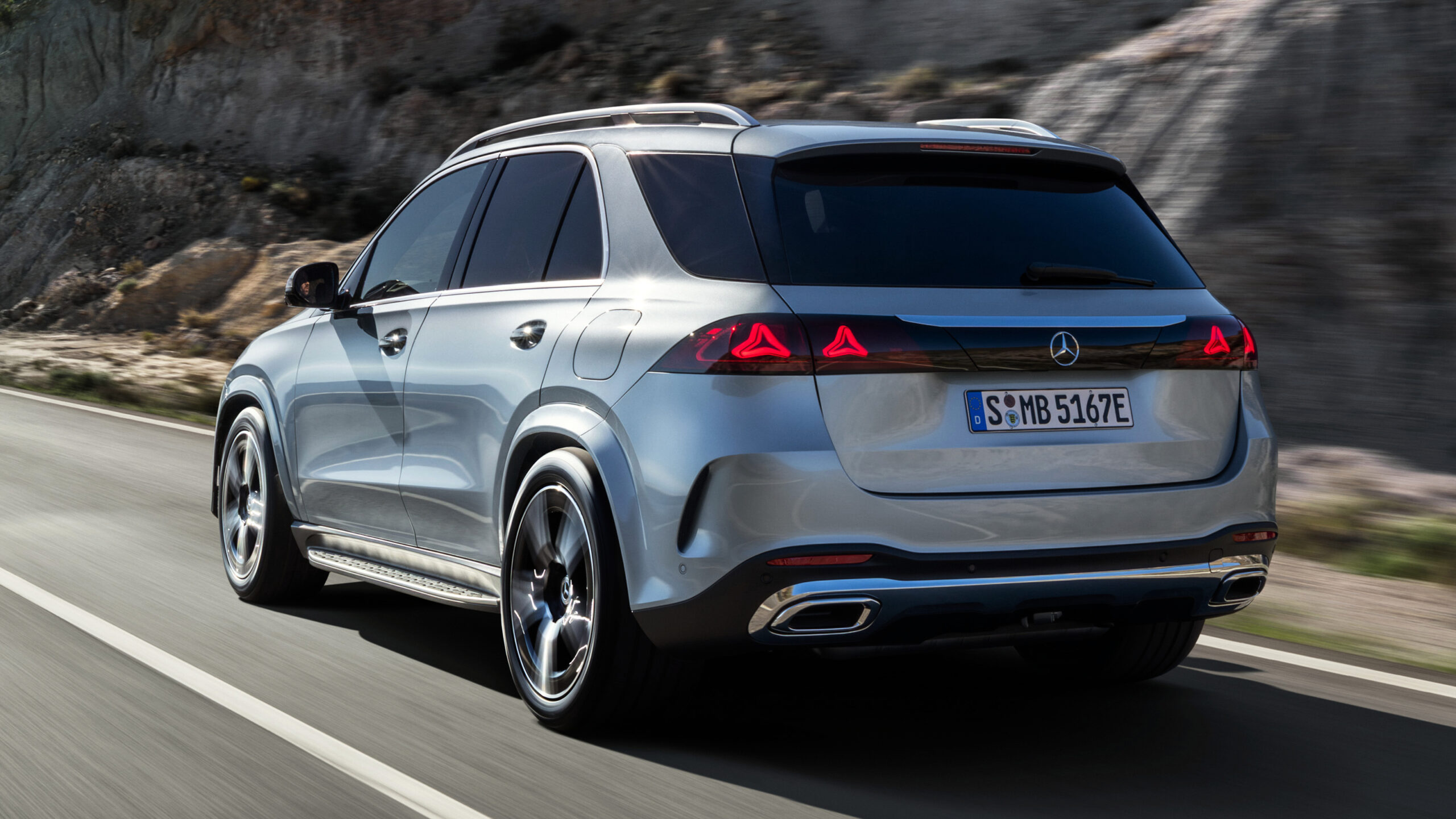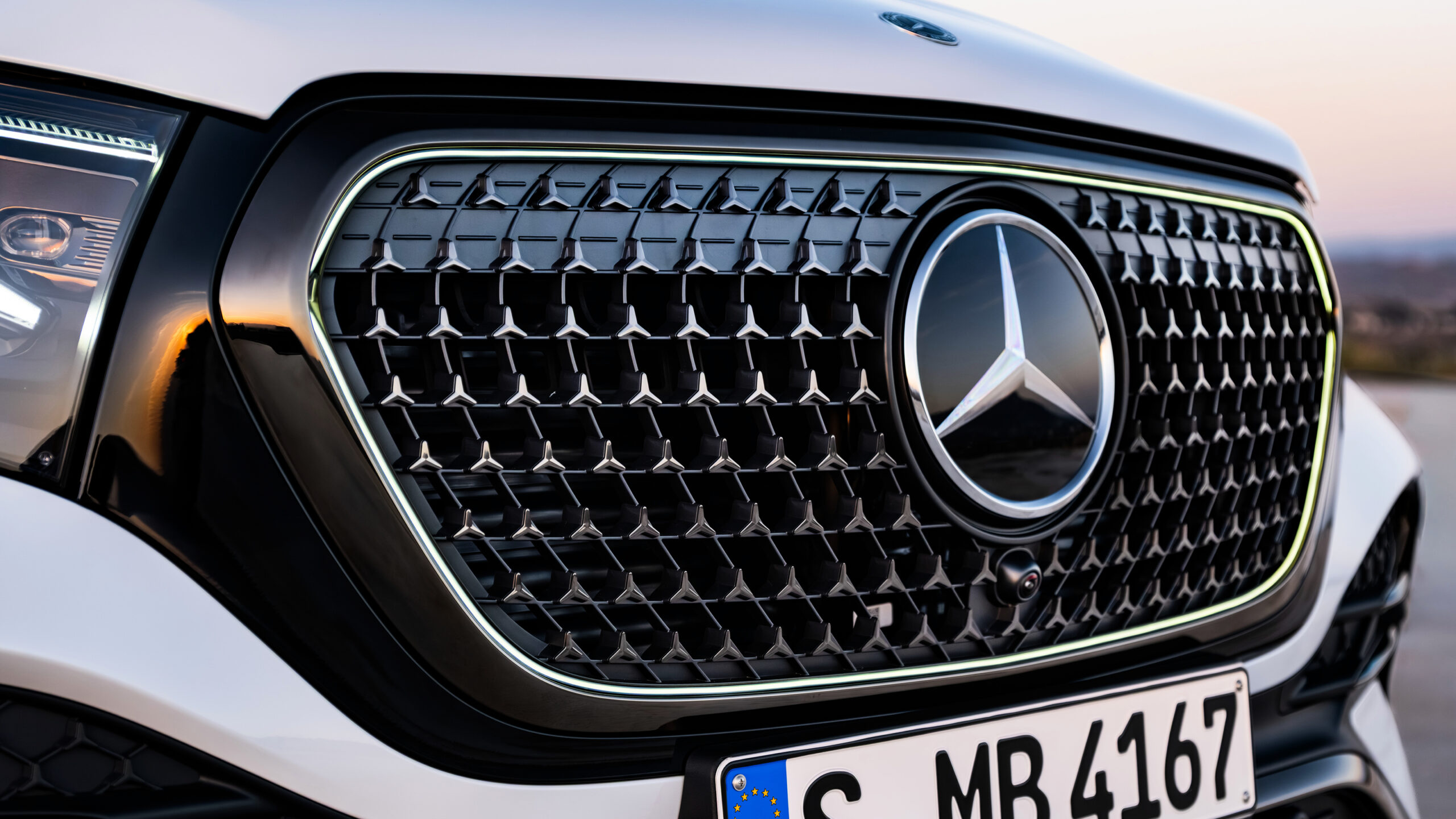 Основной кузов старого автомобиля остается, но есть новые элементы переднего и заднего освещения. Эти элементы приводят GLE в соответствие с более поздними моделями бренда и включают в себя более крупные фары с двойными трехзвездочными мотивами освещения и улучшенную функциональность Digital Light. Решетка также больше и находится в черной раме, хотя это приводит к шокирующему разрыву в панели, где капот встречается с бампером.