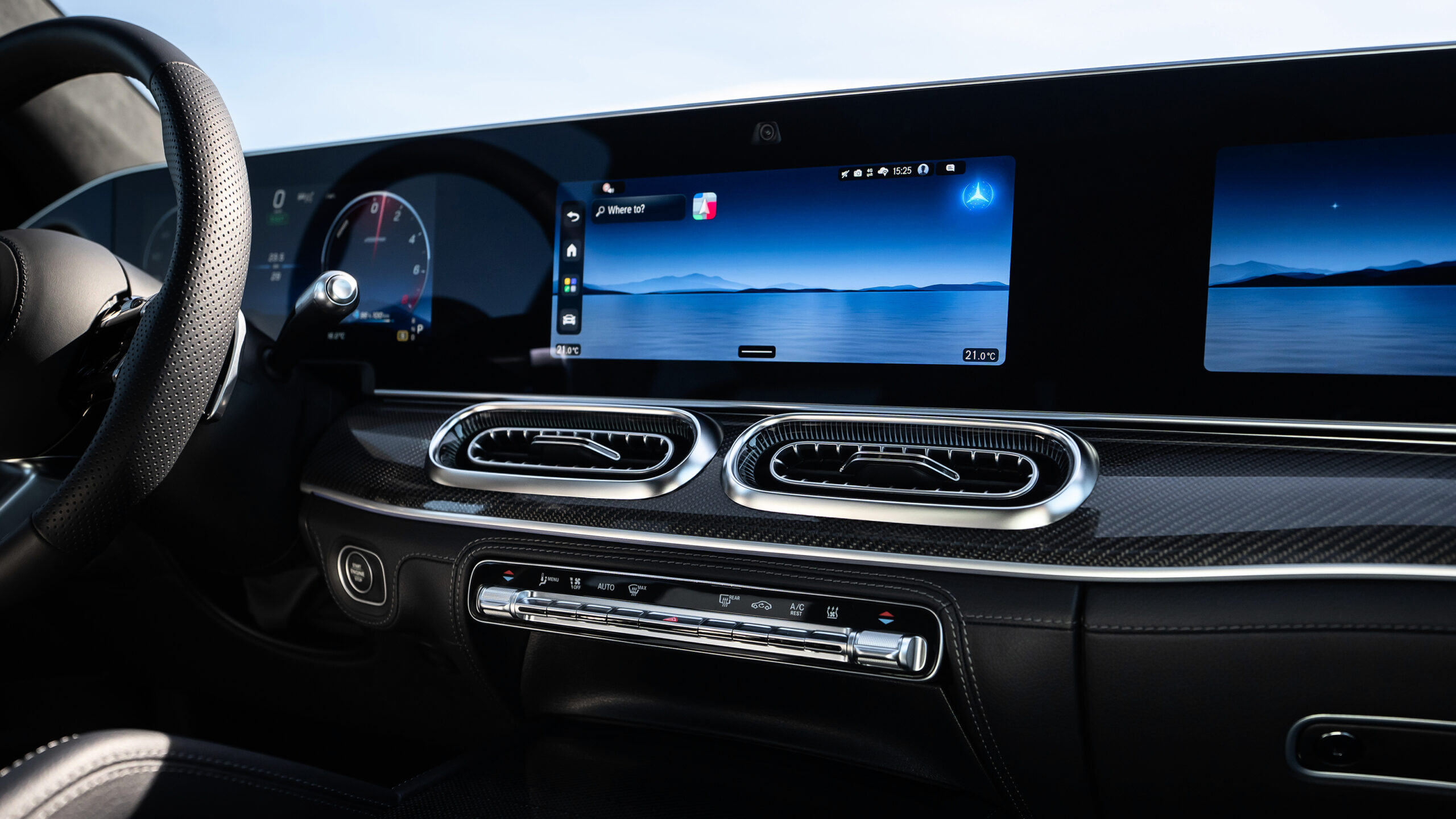 Новые освещенные вентиляционные отверстия сидят на этой главной DashCoin, но предыдущая центральная консоль и ряд физических кнопок остаются. Руль также переключается на версию с роликами вместо прежних сенсорных элементов управления. Пространство внутри остается неизменным по сравнению с существующей моделью, потому что базовый корпус и структура одинаковы. Тем не менее, Mercedes стремится подчеркнуть более широкий выбор материалов и отделки, доступных через свою программу персонализации Manufaktur.