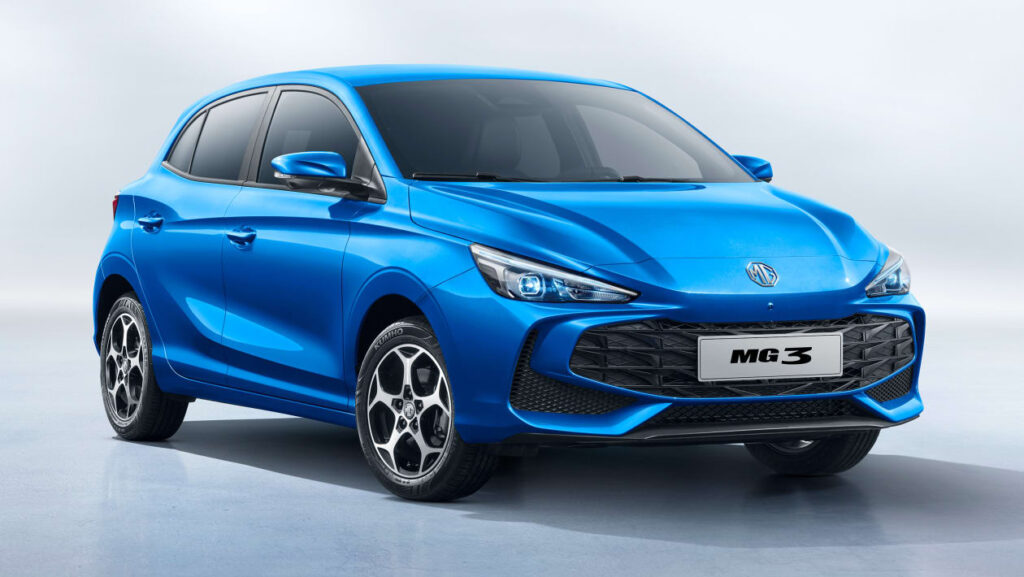 Повсюду разбросаны элементы, общие с полностью электрическим хэтчбеком MG4 и спортивным автомобилем MG Cyberster. Как и эти модели, новый MG3 отличается стреловидными светодиодными фарами, плавным кузовом, ярко выраженными линиями капота и большим хромированным значком MG на остром носу.