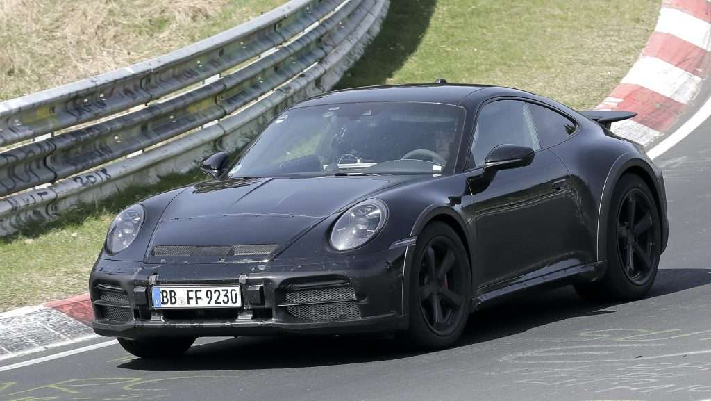 В других местах в задней части нет воздуховодов, что позволяет предположить, что этот тестовый автомобиль может быть основан либо на полноприводной Carrera 2S, либо на полноприводной трансмиссии Carrera 4S. Это будет означать мощность либо 380 л.с., либо 444 л.с. Чтобы максимизировать внедорожные возможности, полноприводная установка 4S является более вероятным вариантом.